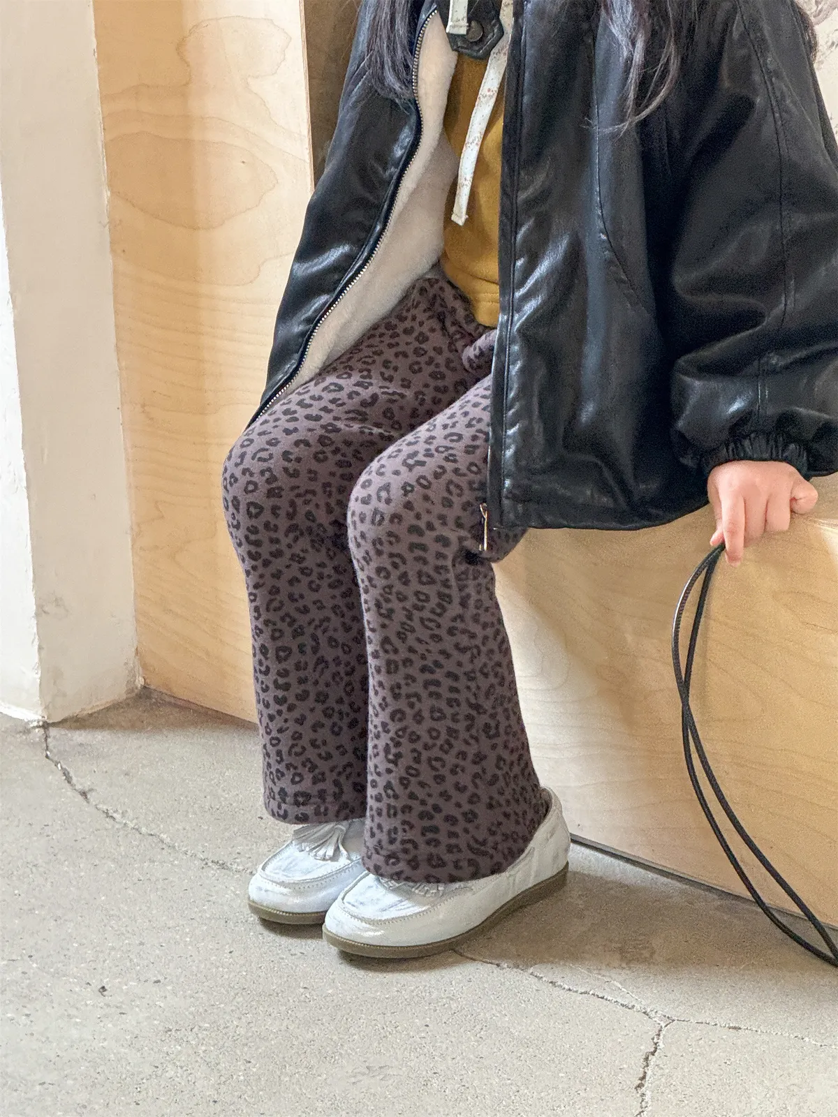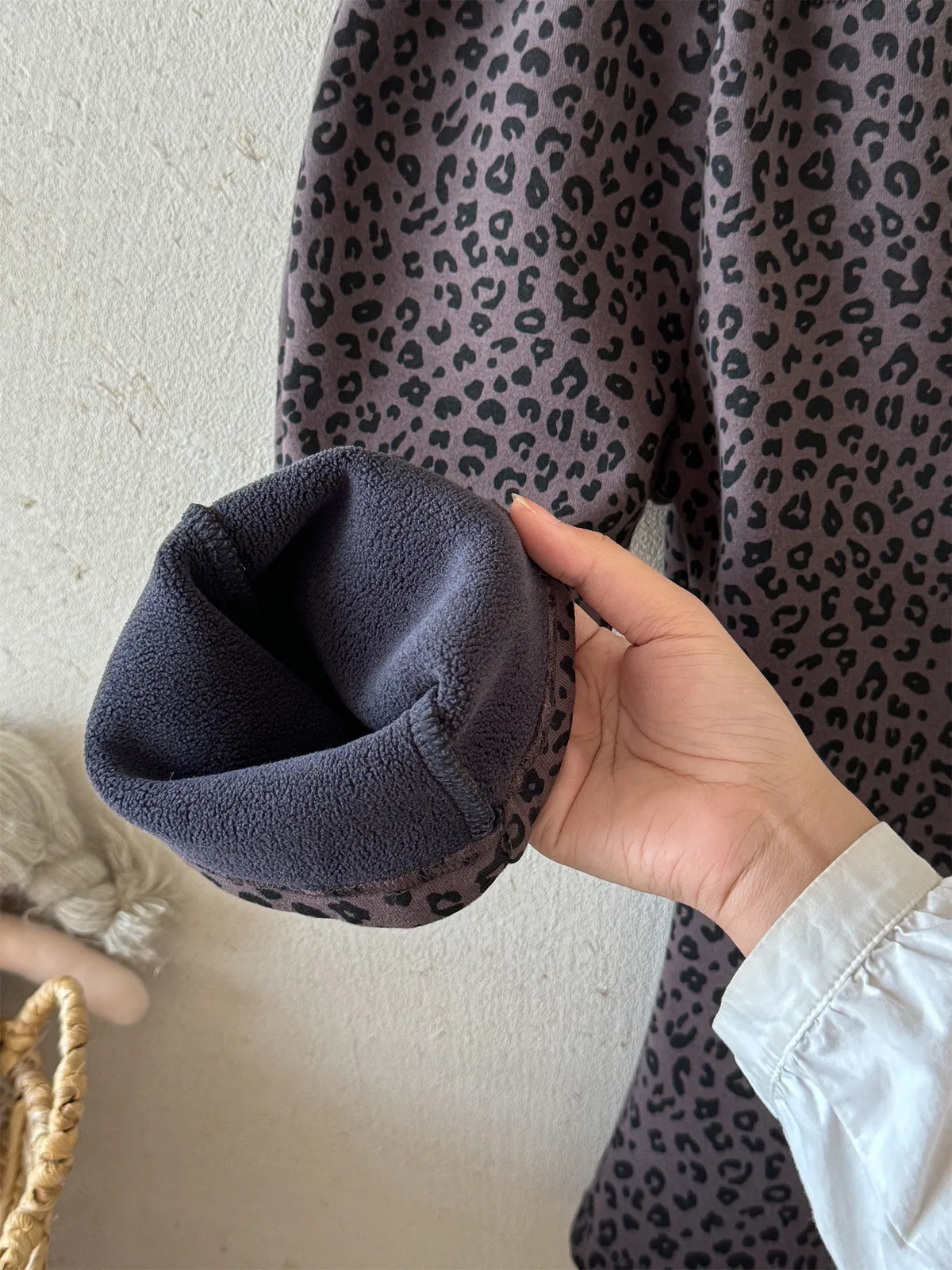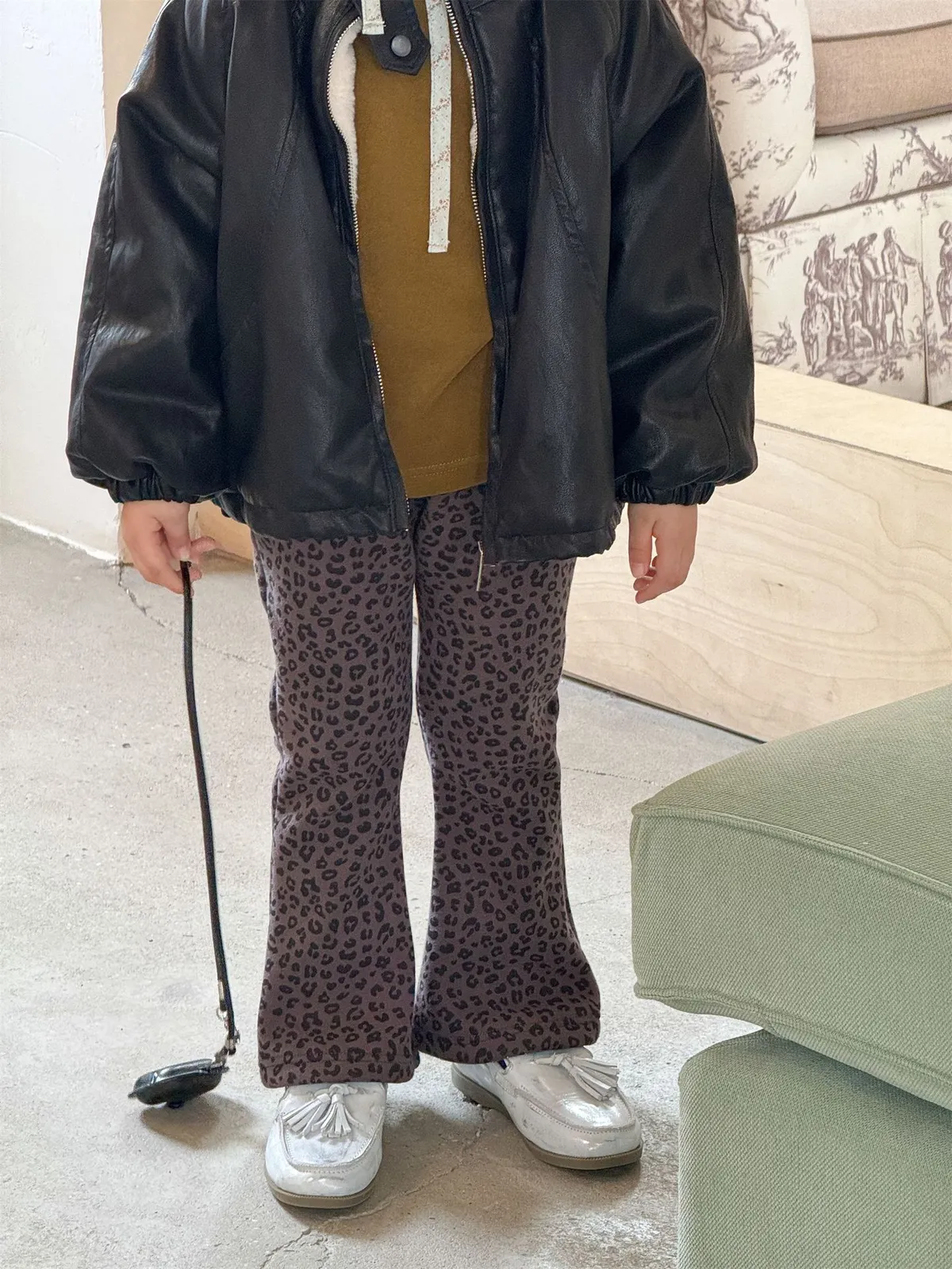 [90-130碼]加絨款#時髦豹紋喇叭褲