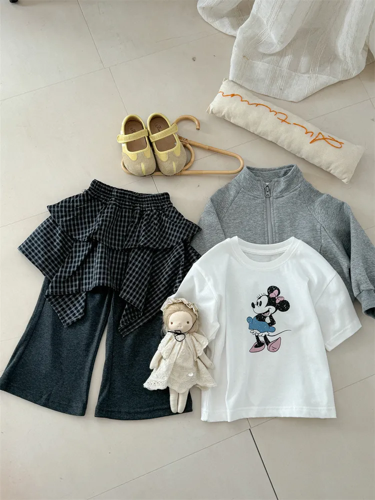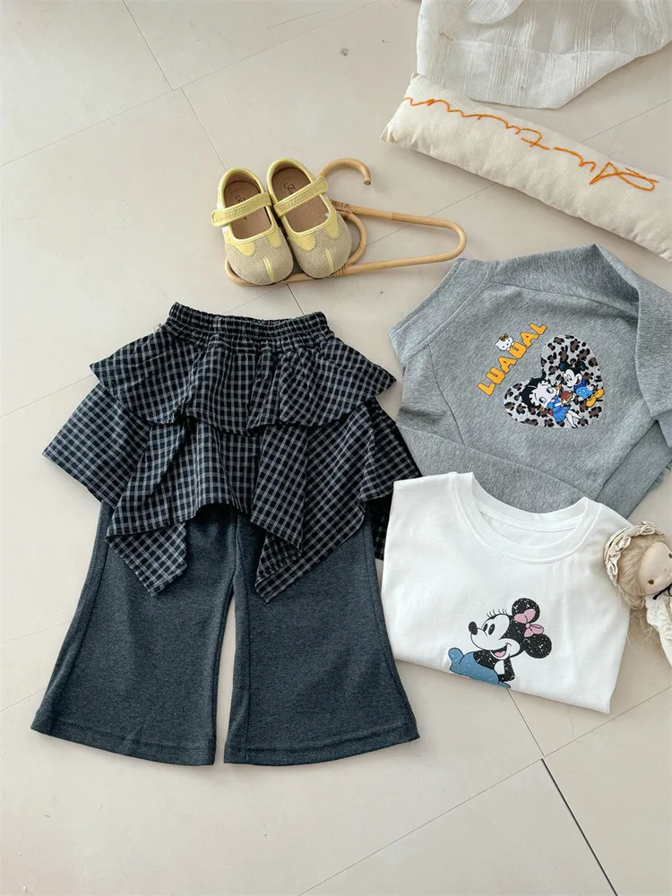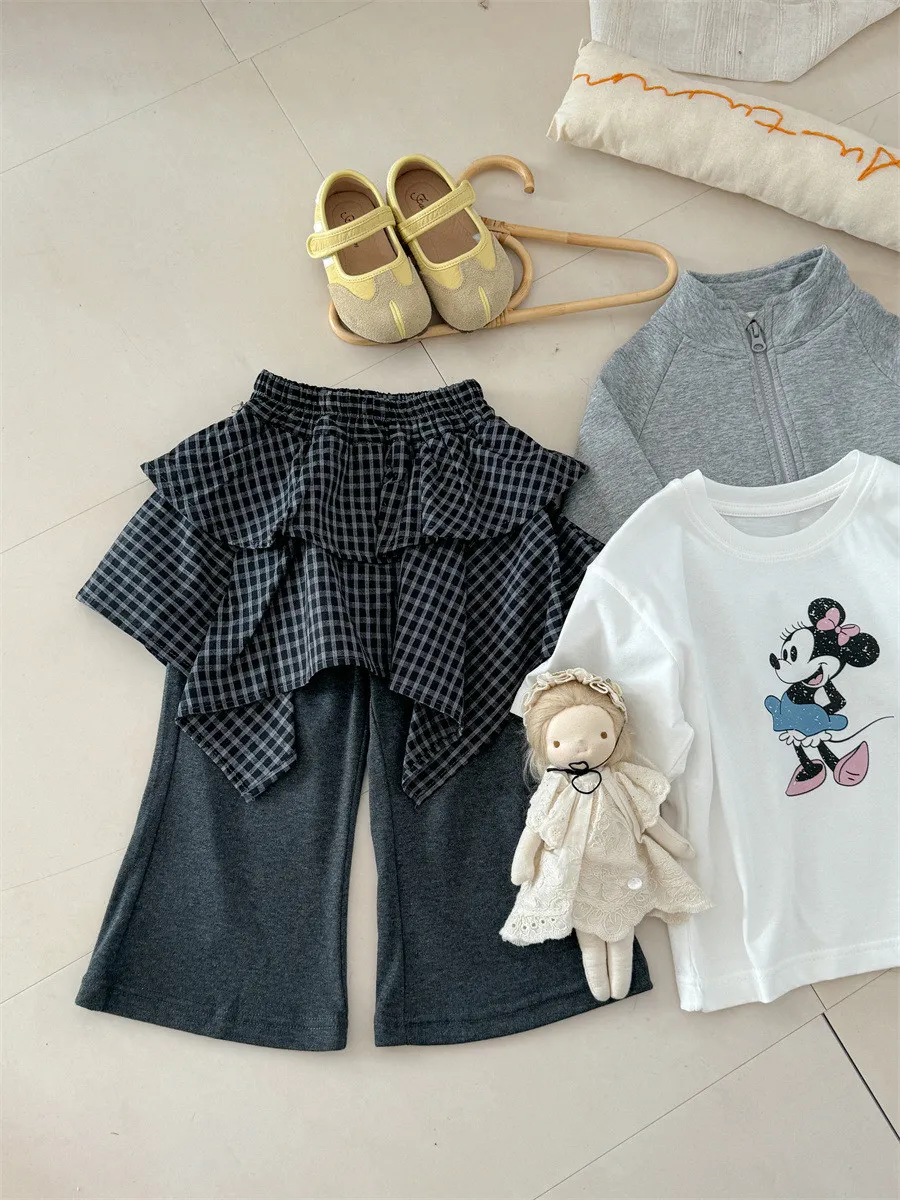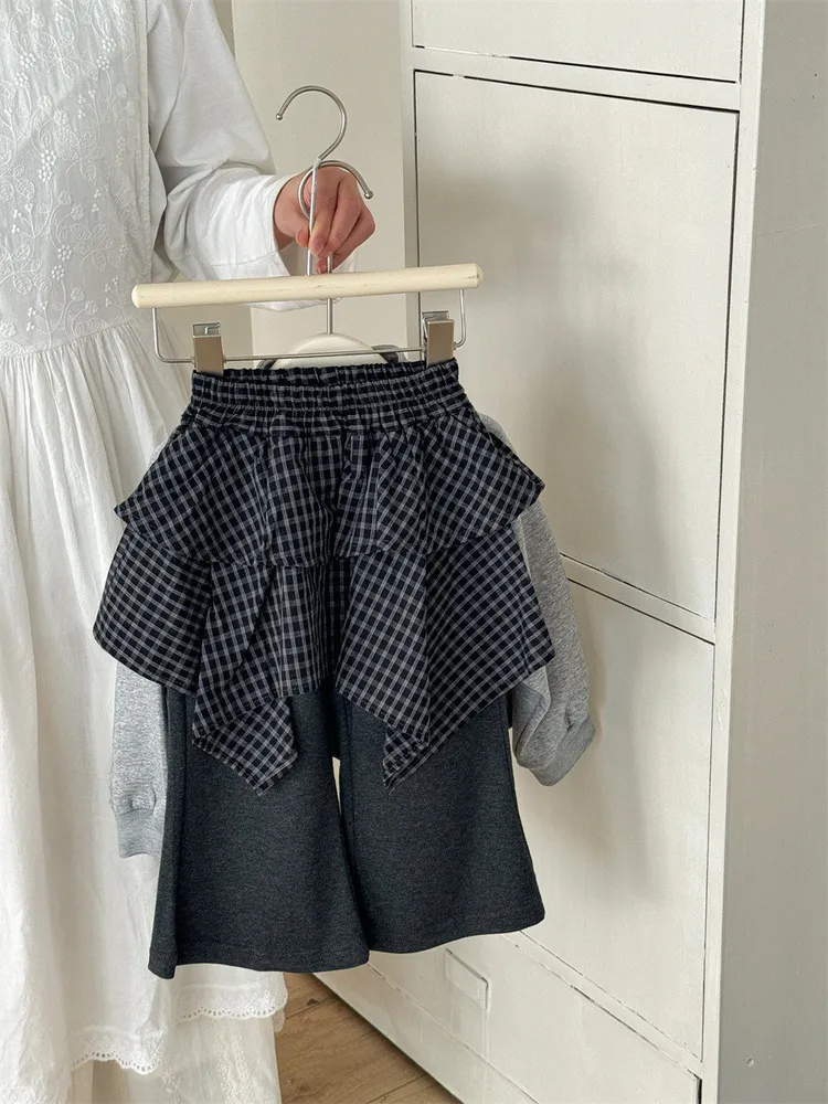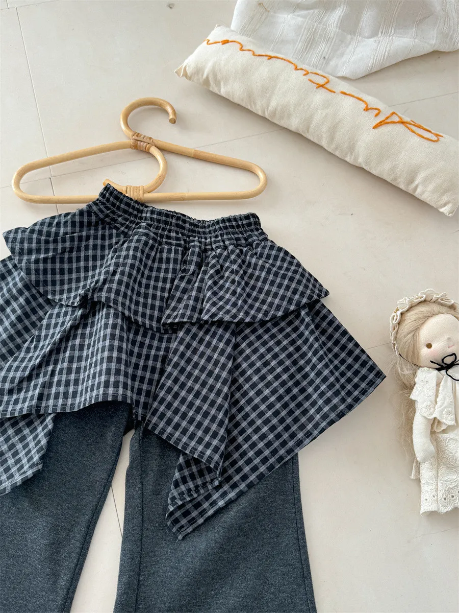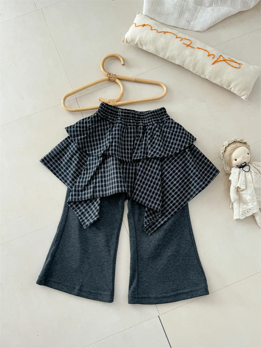 (90-140碼)時髦感疊穿格紋喇叭褲