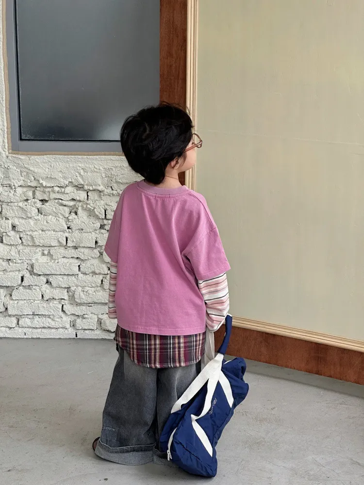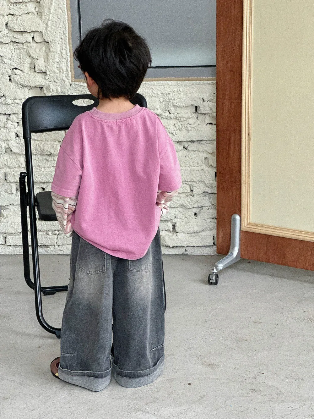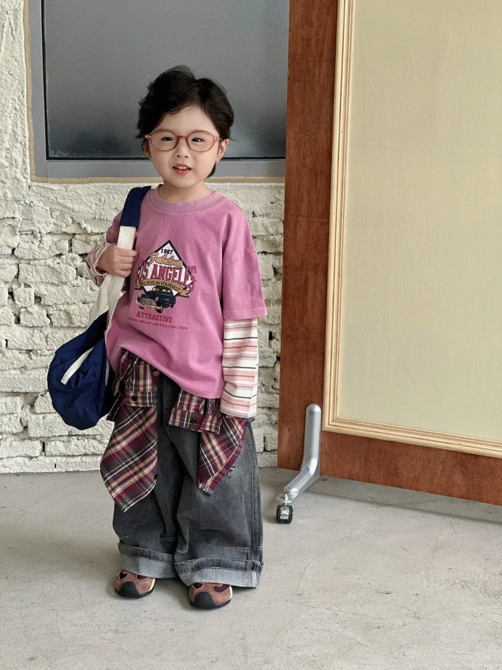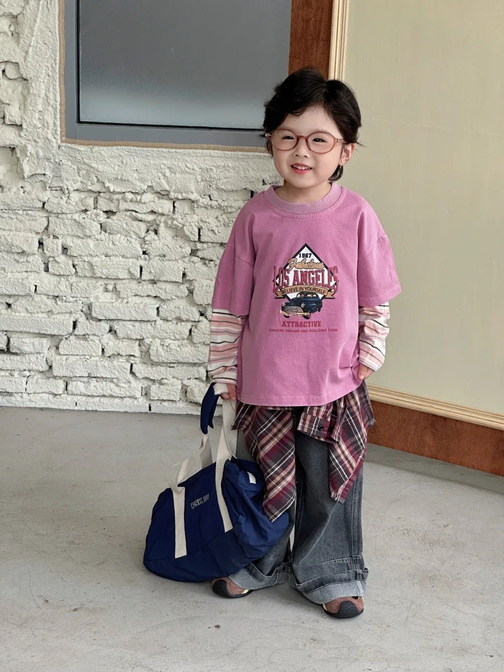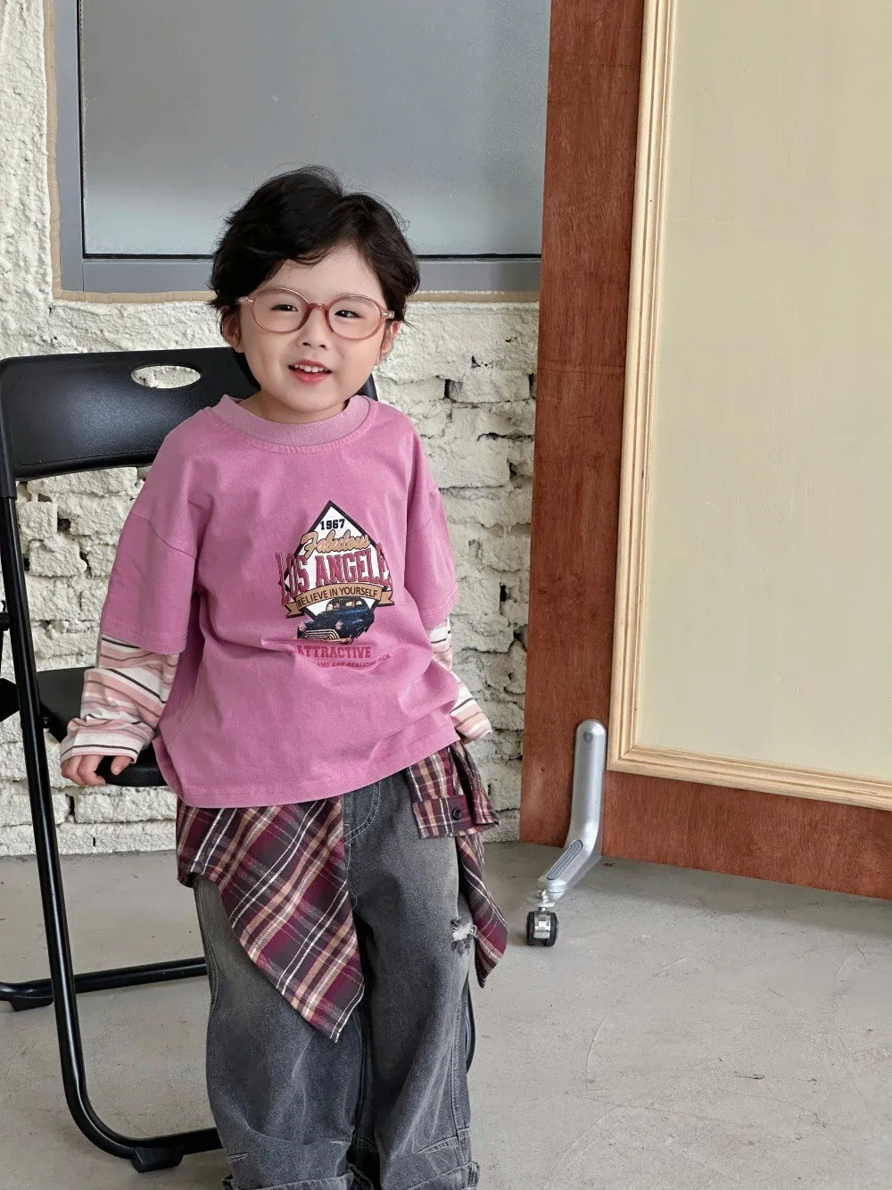 [90-140碼]水洗仿舊賽車印花假兩件上衣