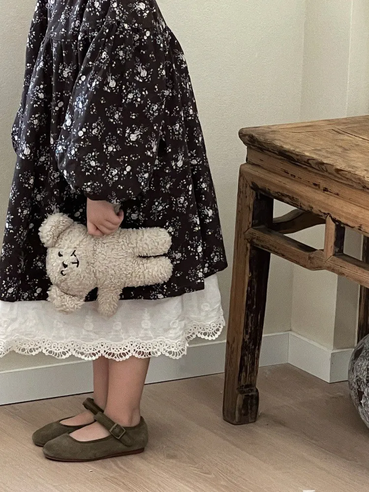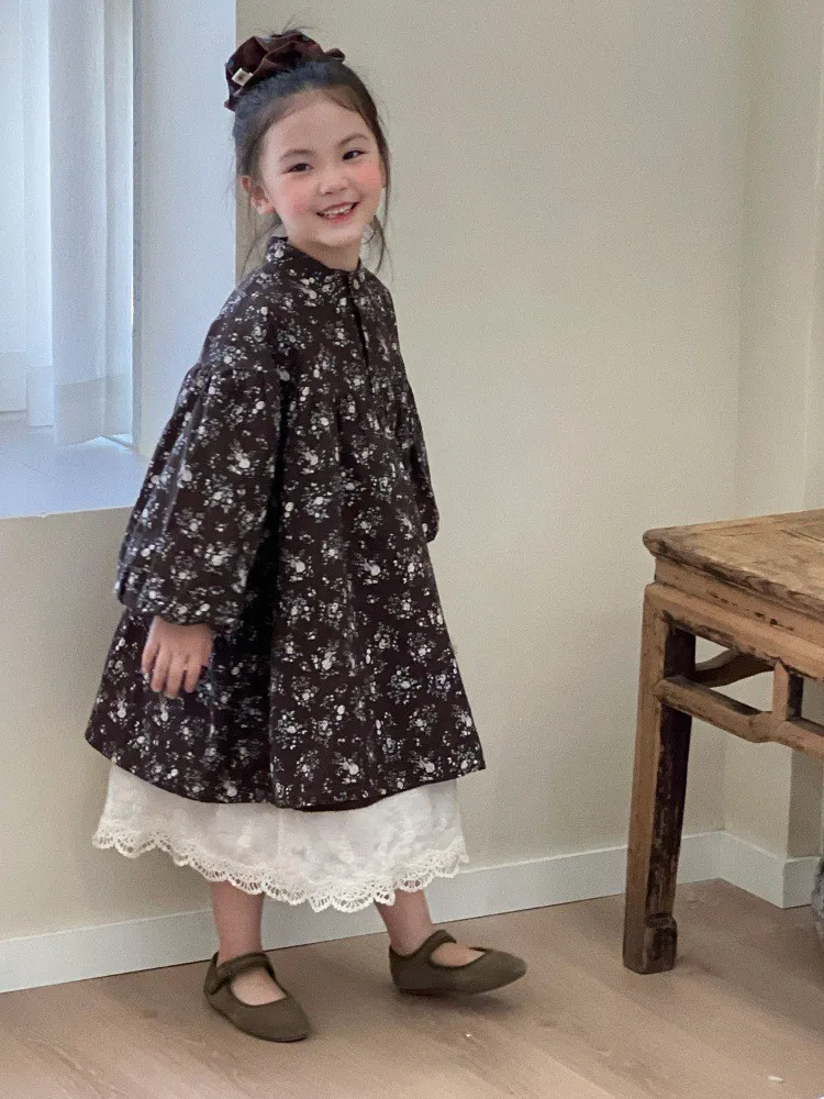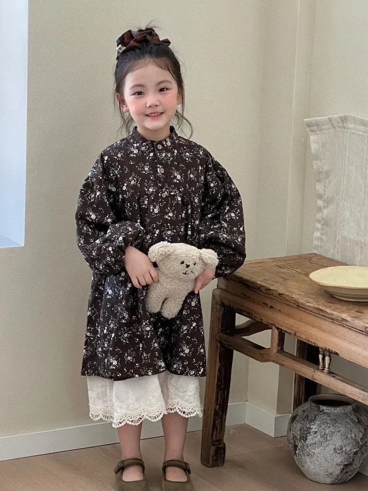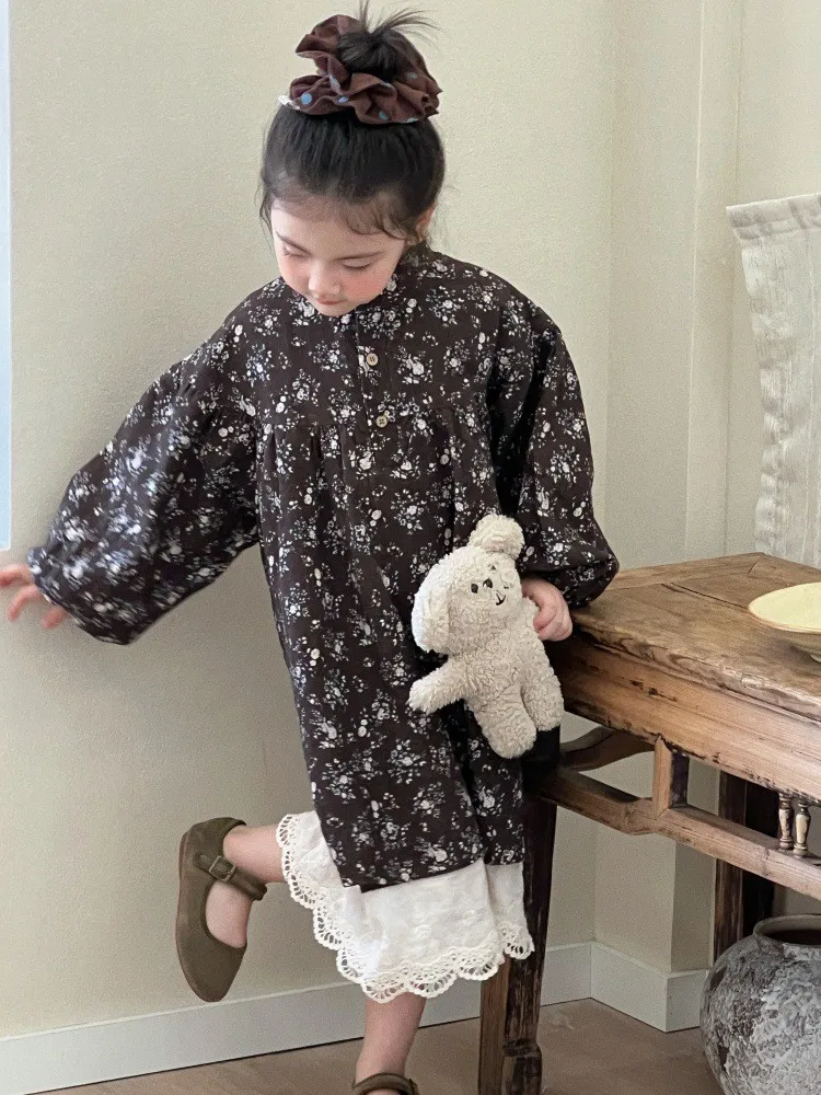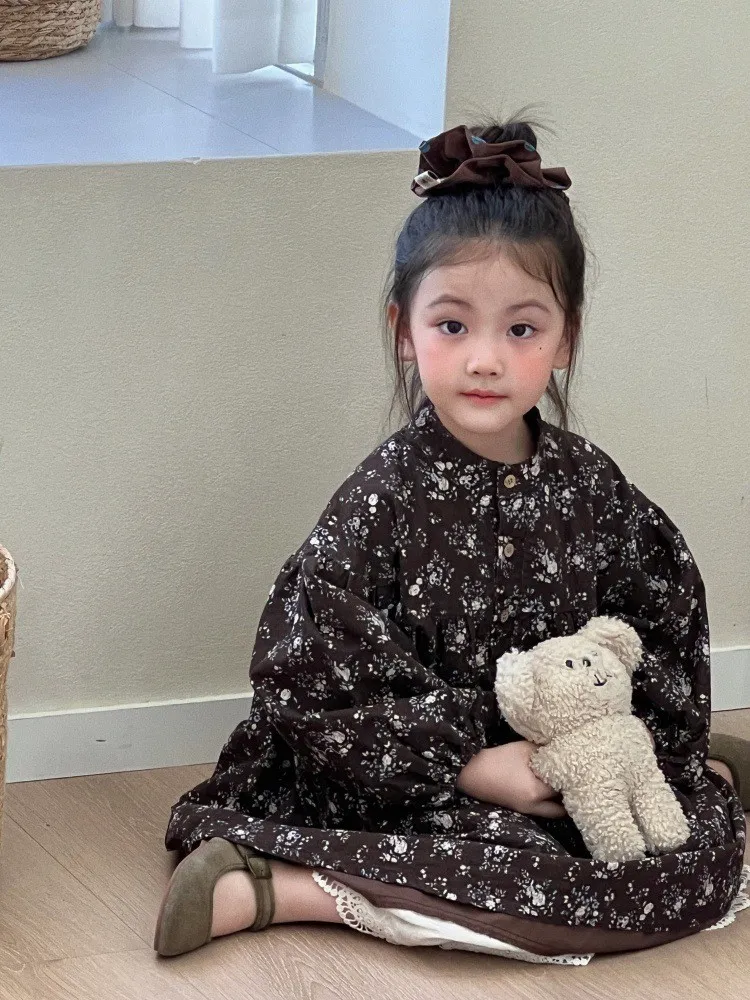 [90-140碼]氣質小碎花泡泡袖連身裙