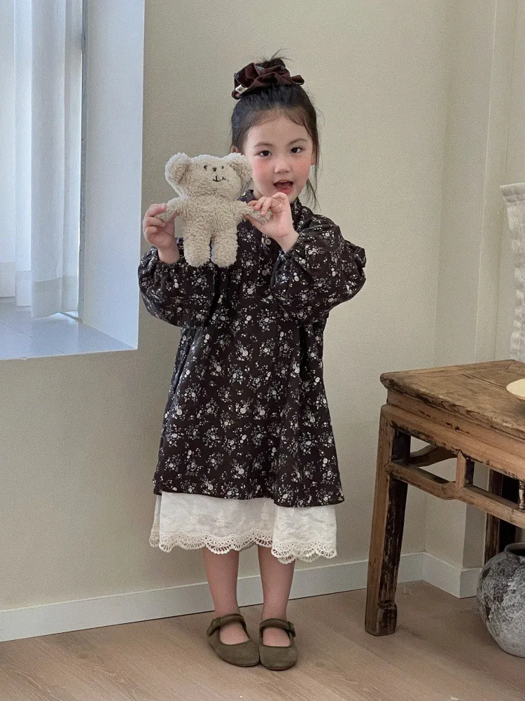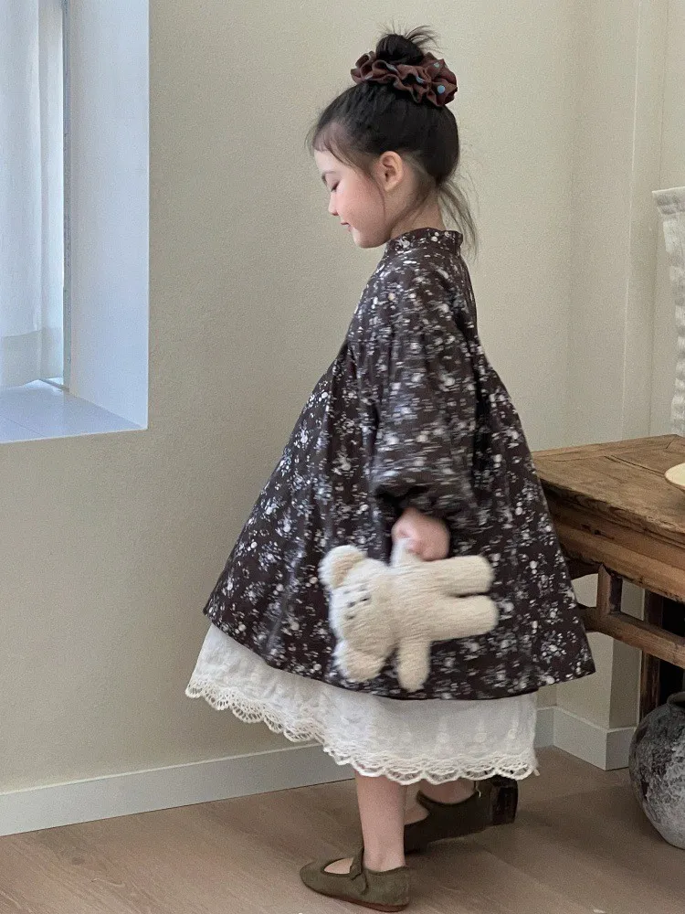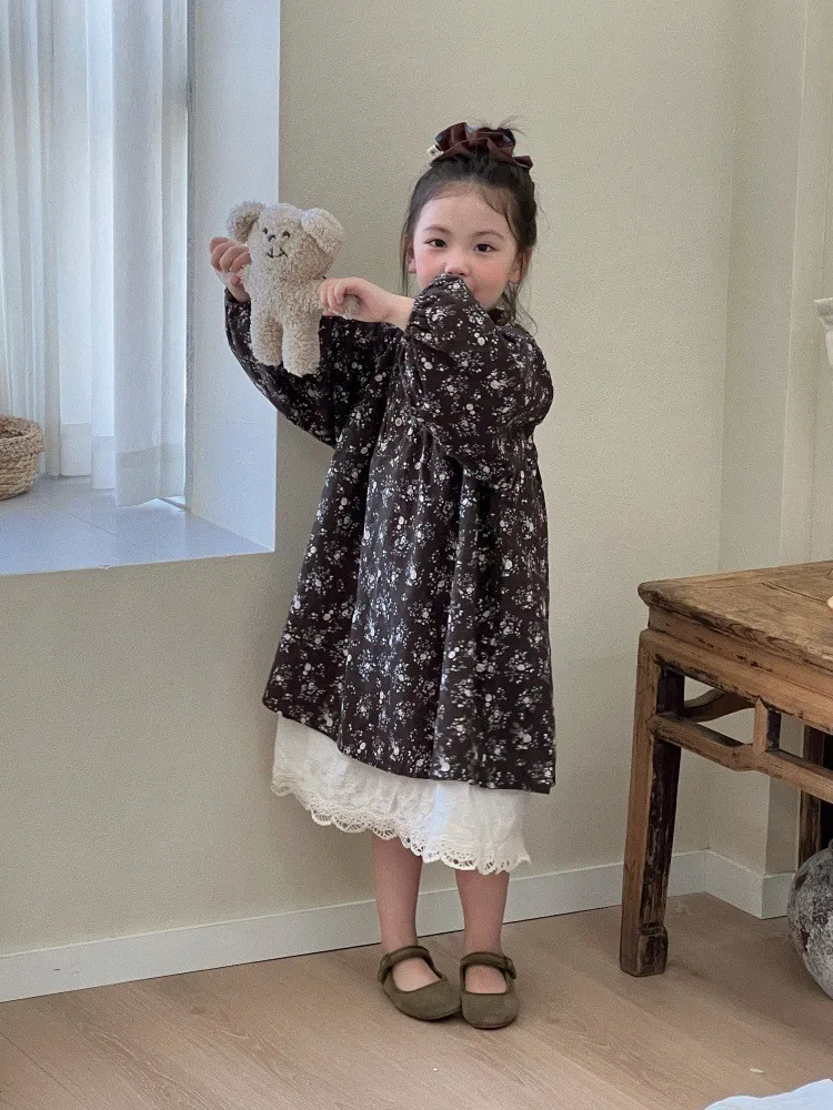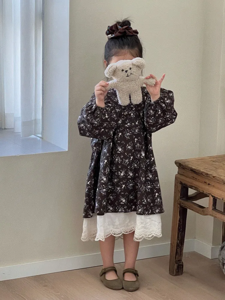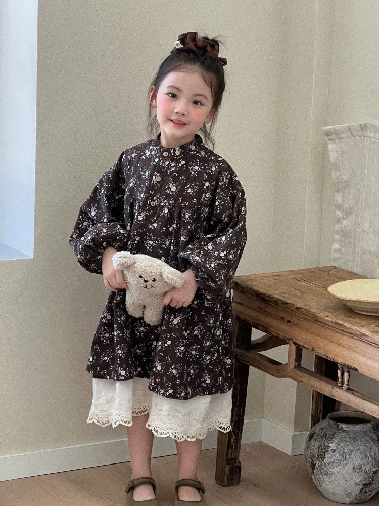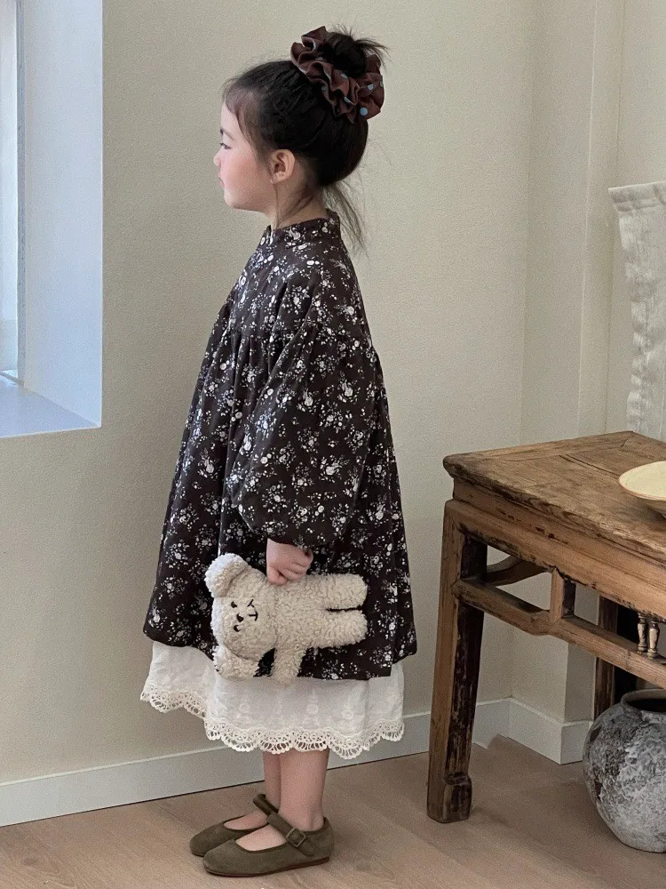 [90-140碼]氣質小碎花泡泡袖連身裙
