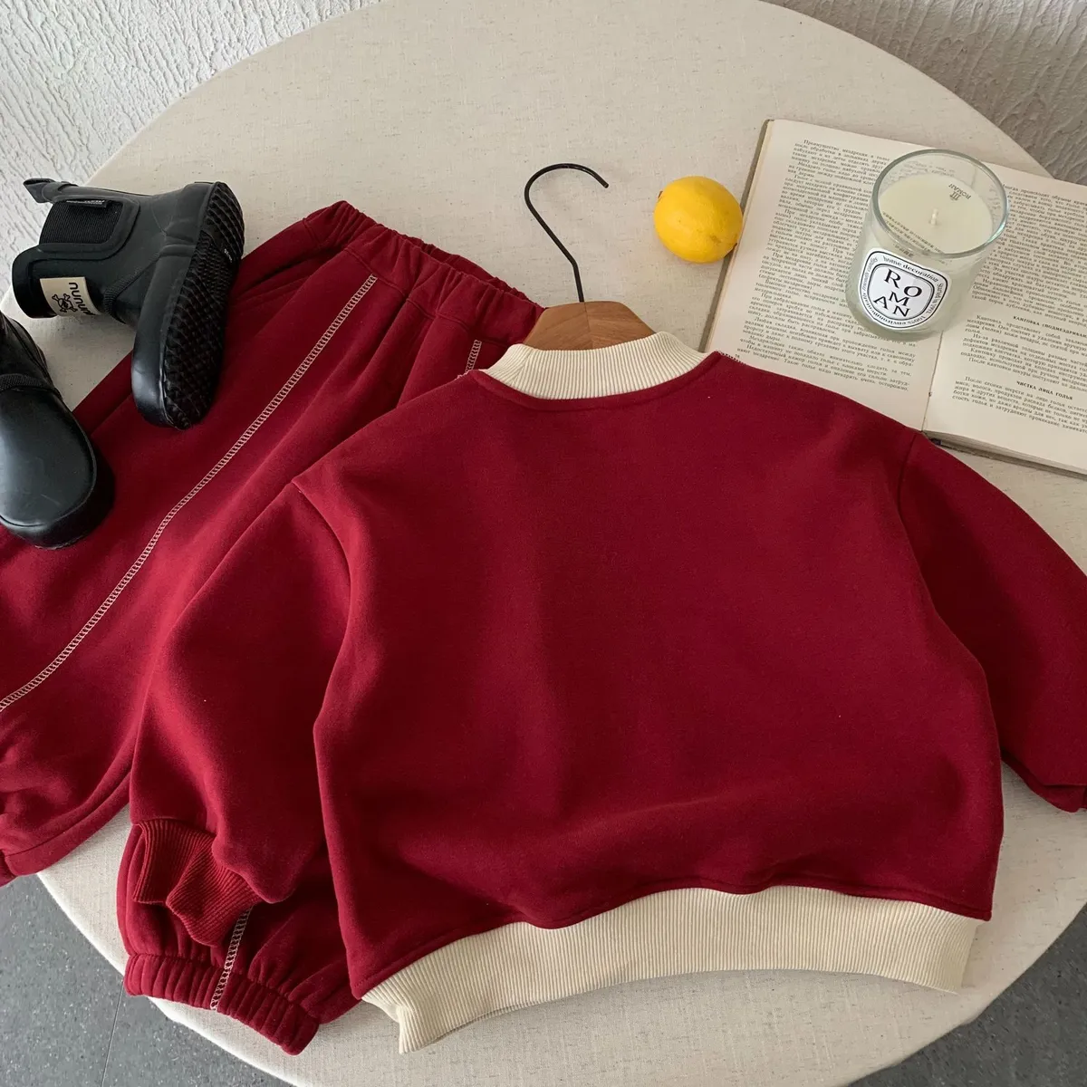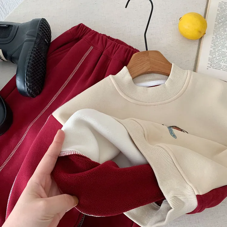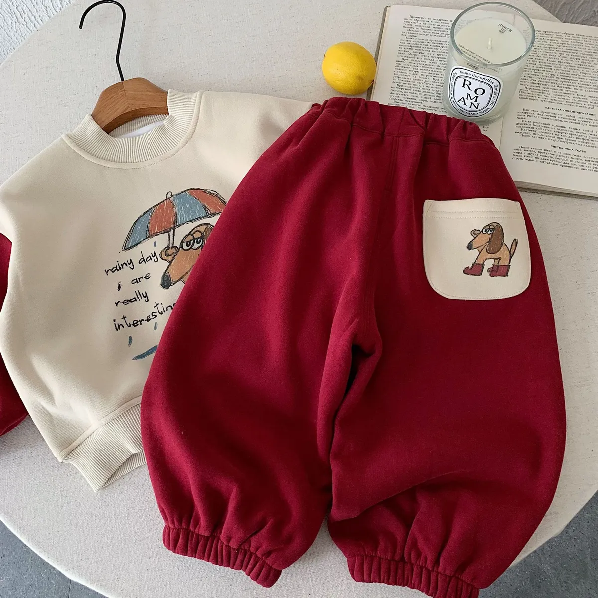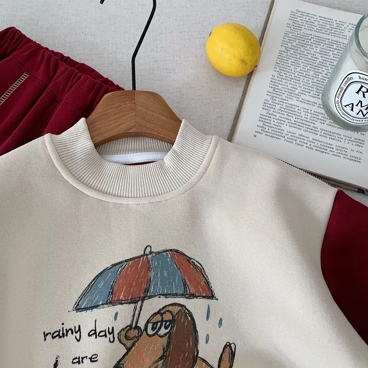 [90-130碼]加絨款#撐傘狗狗拼色運動套裝