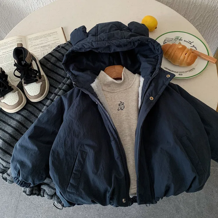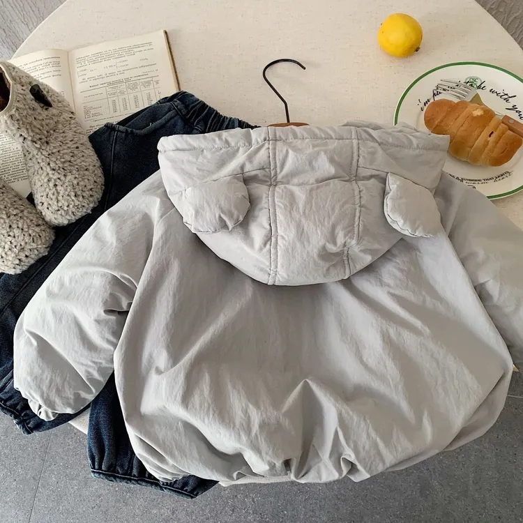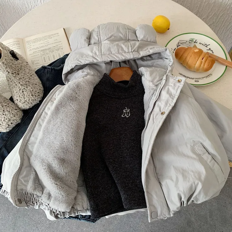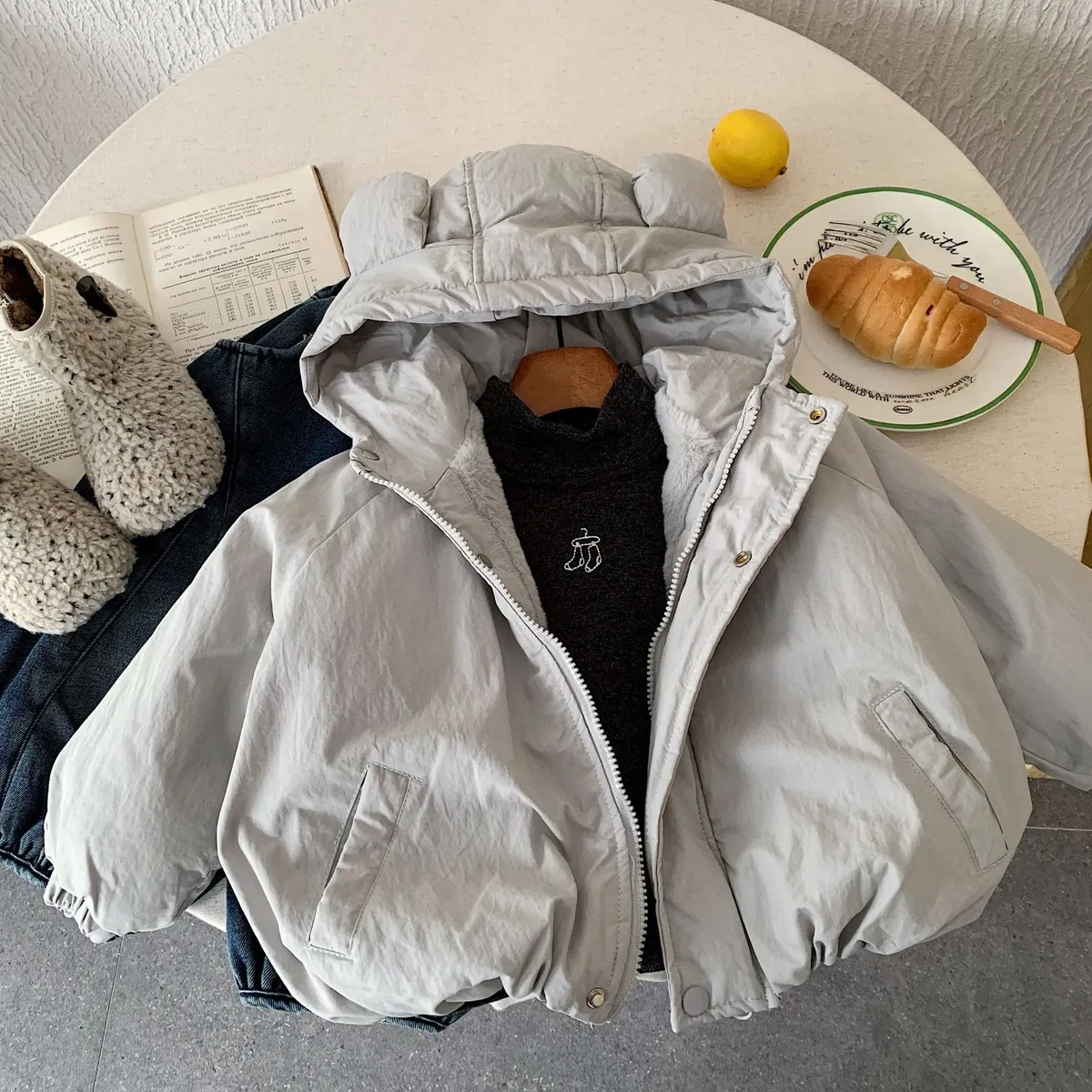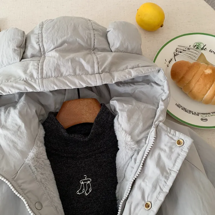 [90-130碼]可愛熊耳朵造型毛絨外套-2色