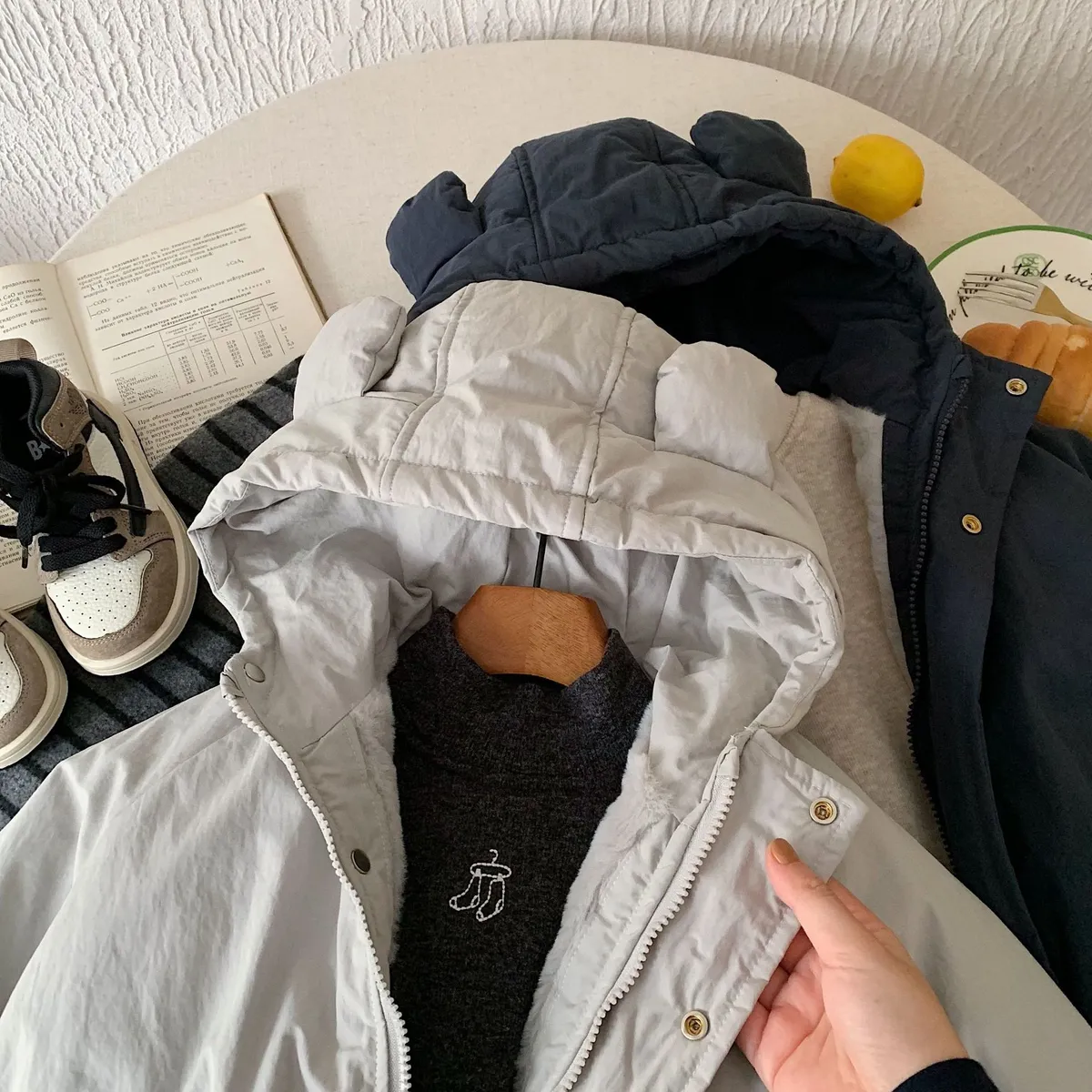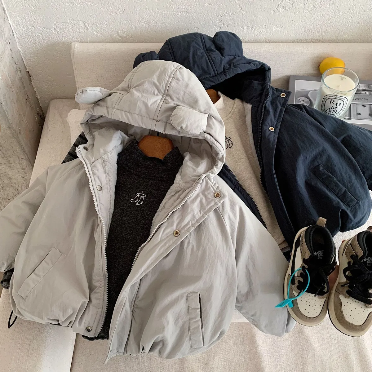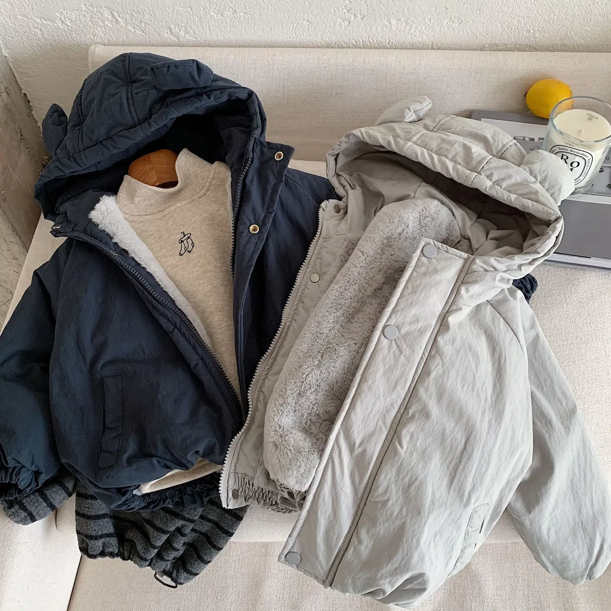 [90-130碼]可愛熊耳朵造型毛絨外套-2色