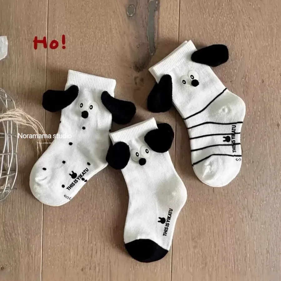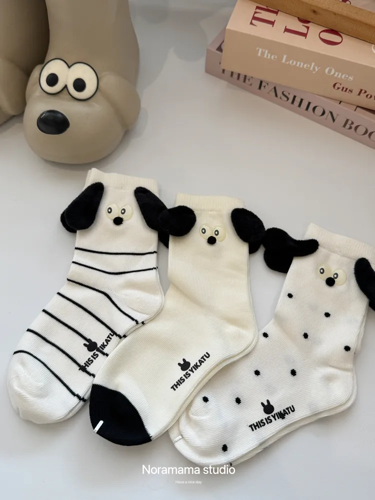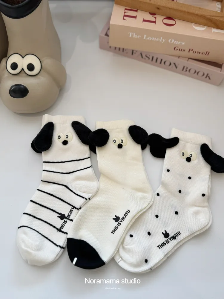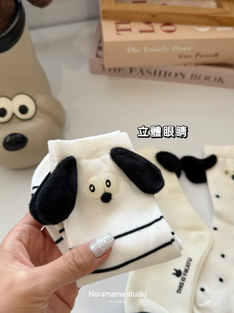 現貨/立體狗狗耳朵中筒襪(4入組)