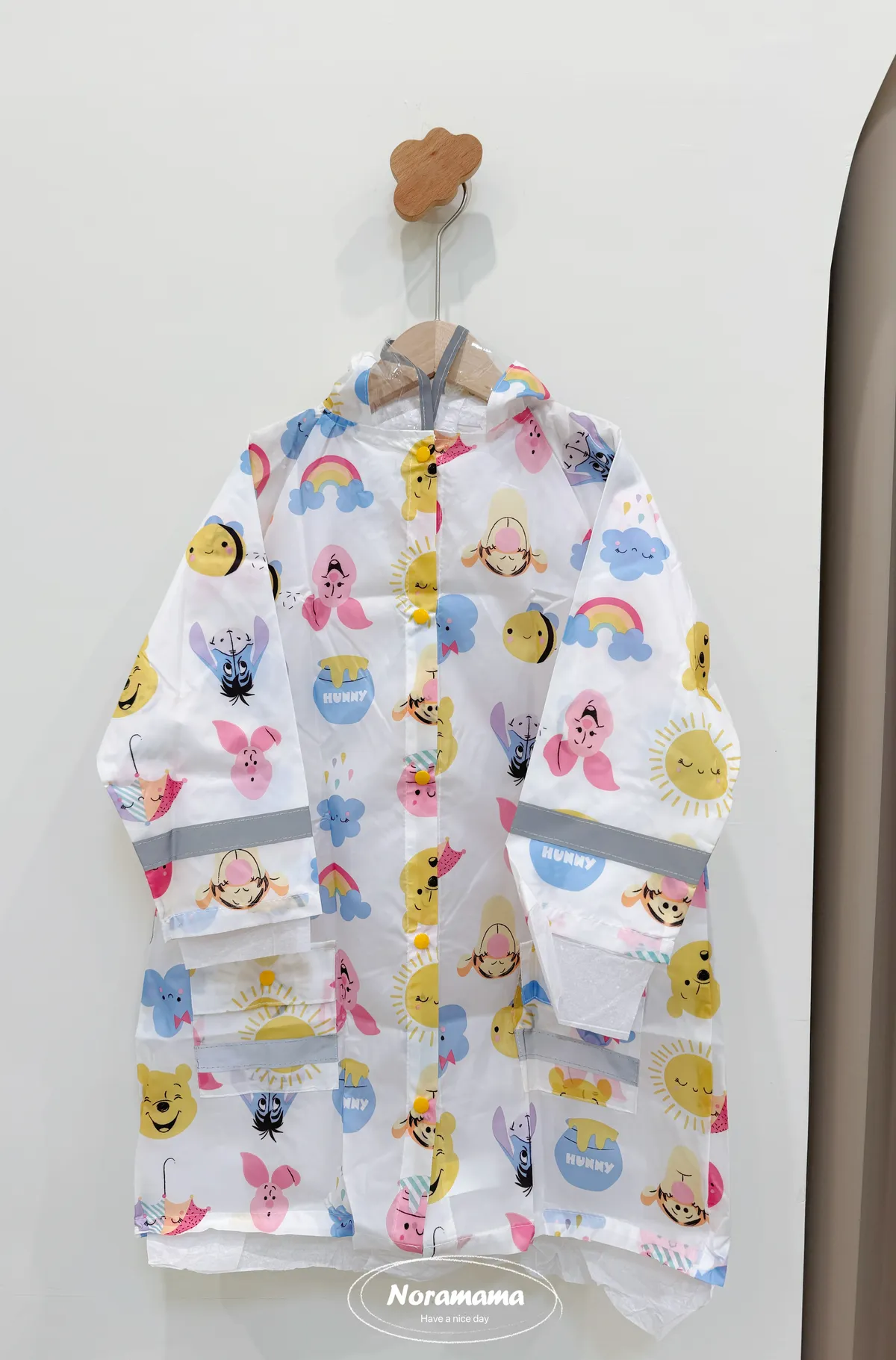 日本新色限定🇯🇵下雨天接送小孩必備的雨衣☔️每一款都是小朋友很愛的卡通圖案/整個下擺都有反光帶,前後肩部有反光縫線確保黑暗道路上的安全兜帽在臉部周圍是透明的因此不會遮擋您的視線!如果解開背面的釦子就可以在背著書包或背包時使用它⚠️切勿使用洗衣機或烘乾機⚠️|尺寸|適合身高:110-125 cm<長度> 71 cm