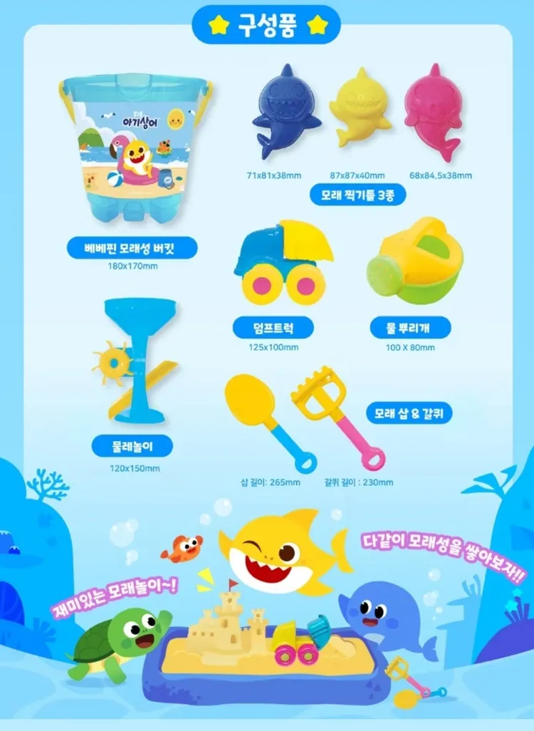 夏天玩水必備挖沙組💦是小朋友最愛的鯊魚寶寶系列帶去海邊或公園玩沙都很適合👍⚠️玩具皆大量生產,偶爾有輕微掉漆/掉色屬正常...等微小問題不屬於瑕疵問題。⚠️國際運送難免會有外盒擠壓痕跡凹痕不影響內容物使用,高標完美主義者請斟酌下單