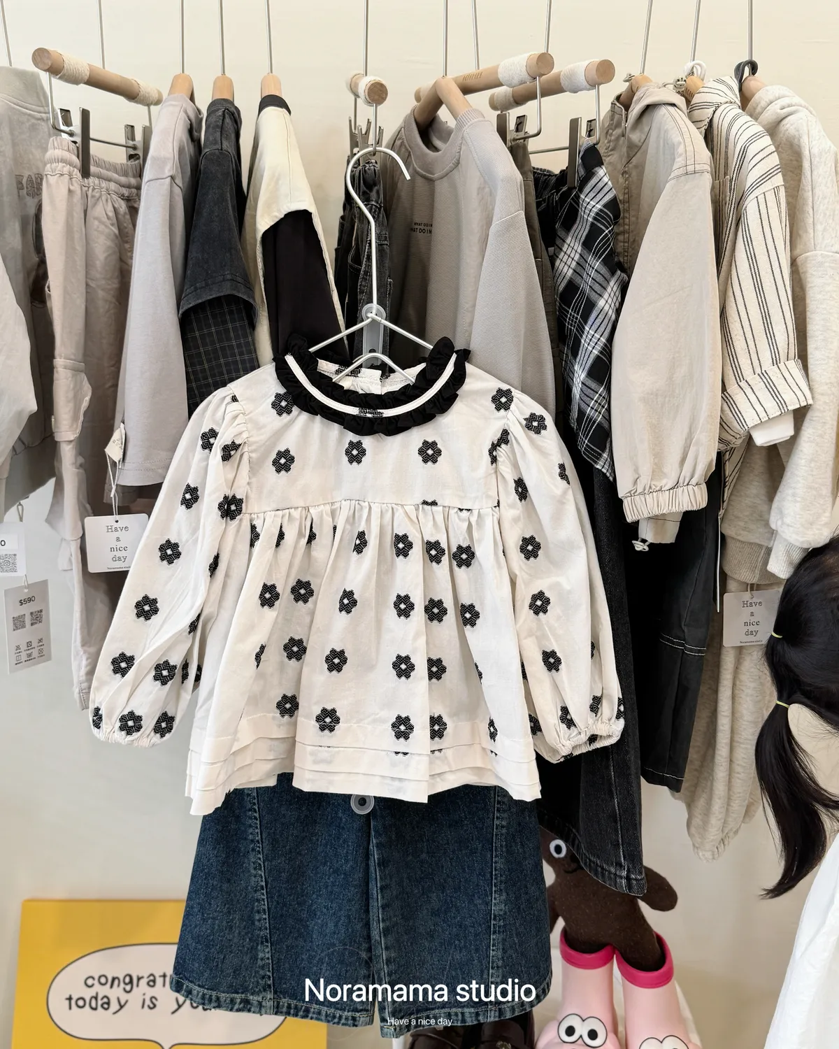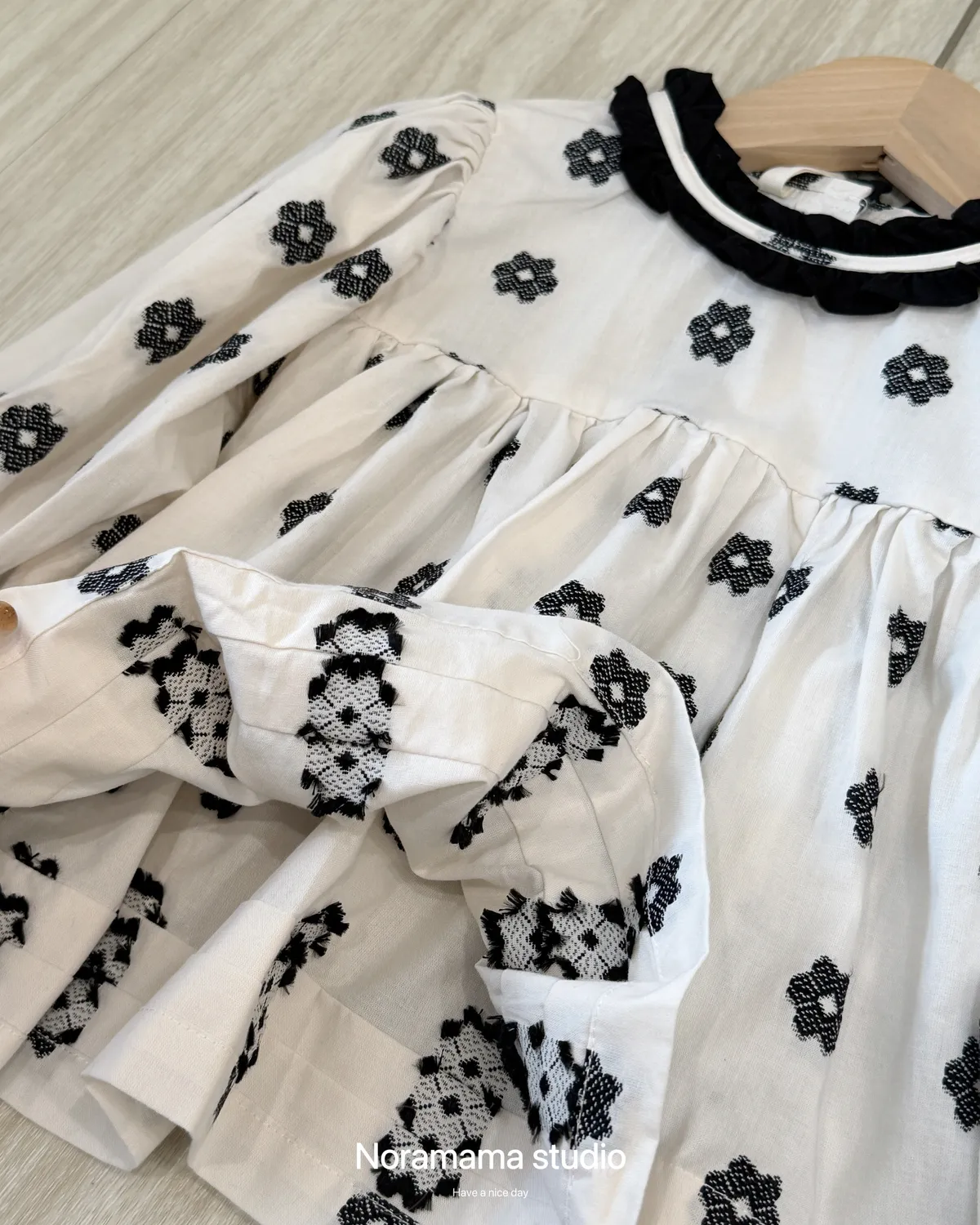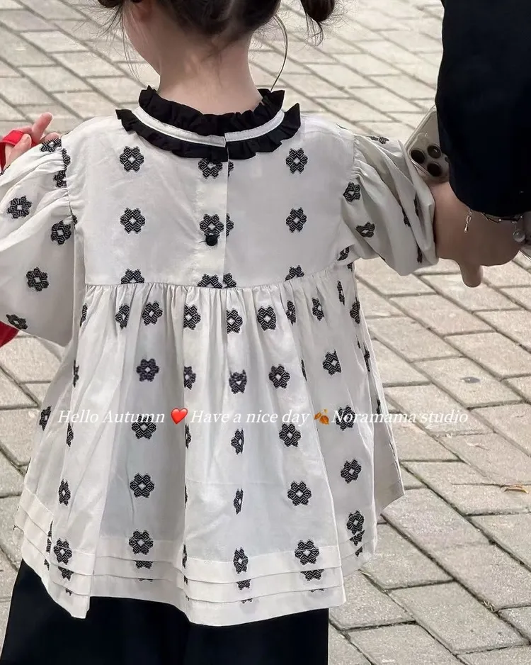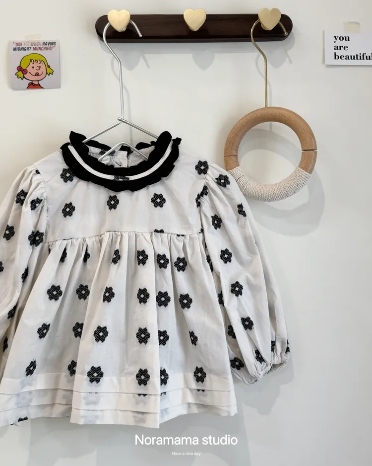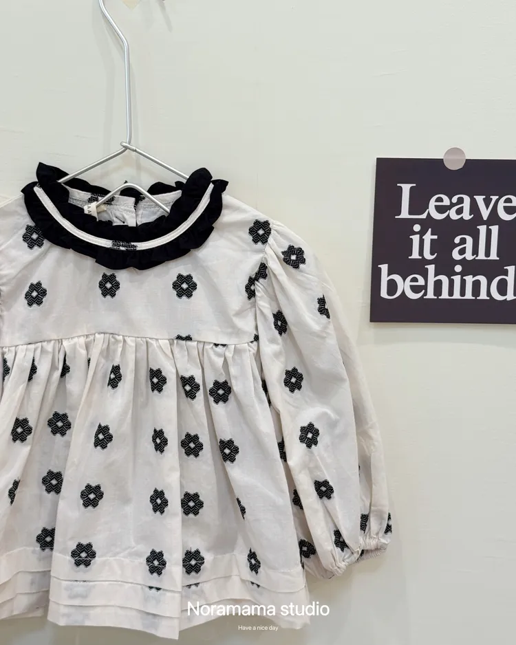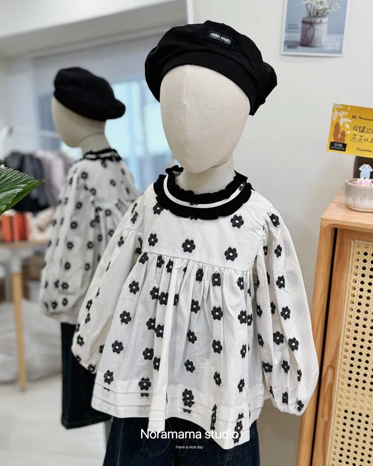 白底搭配黑花刺繡~質感細節滿滿❤️