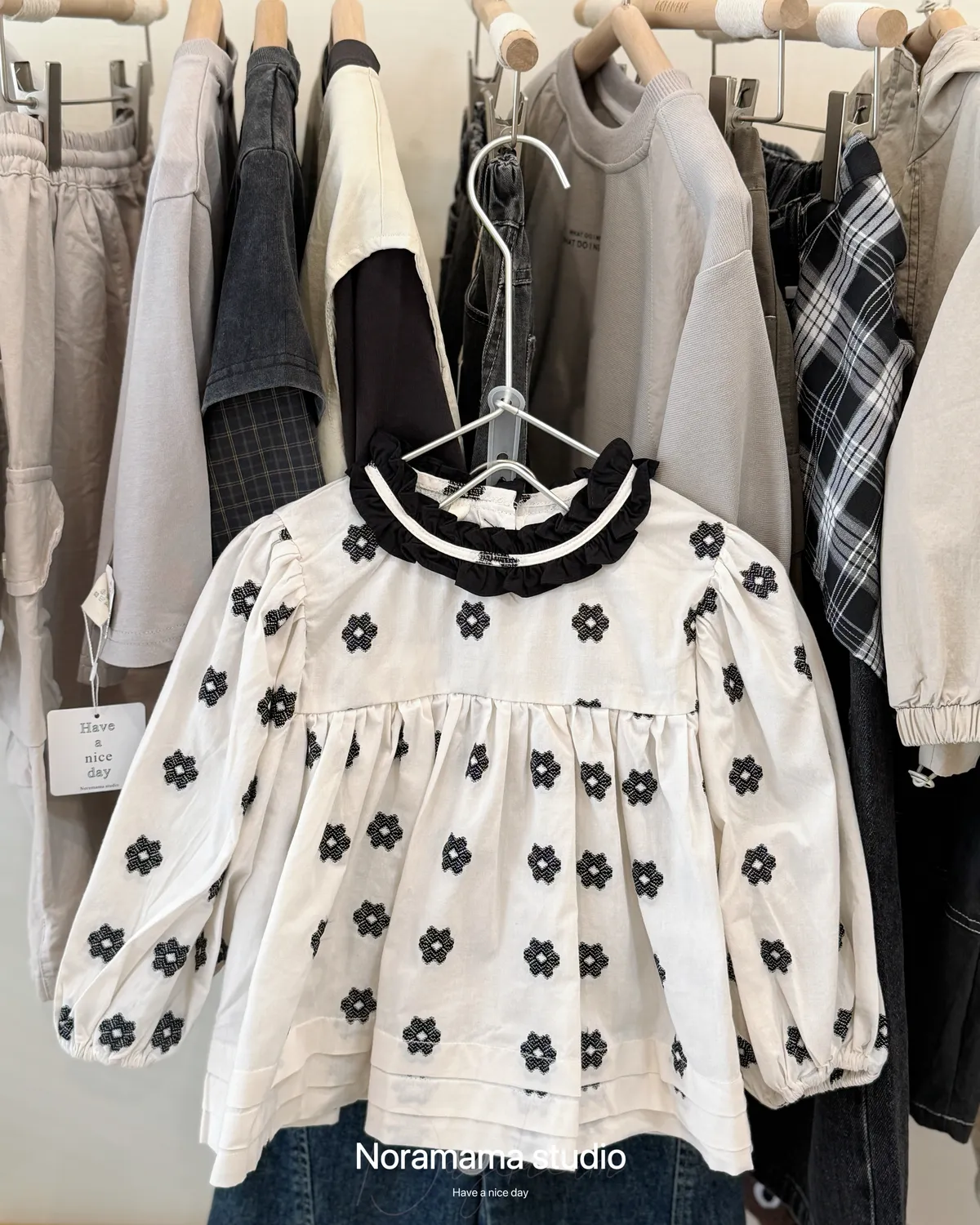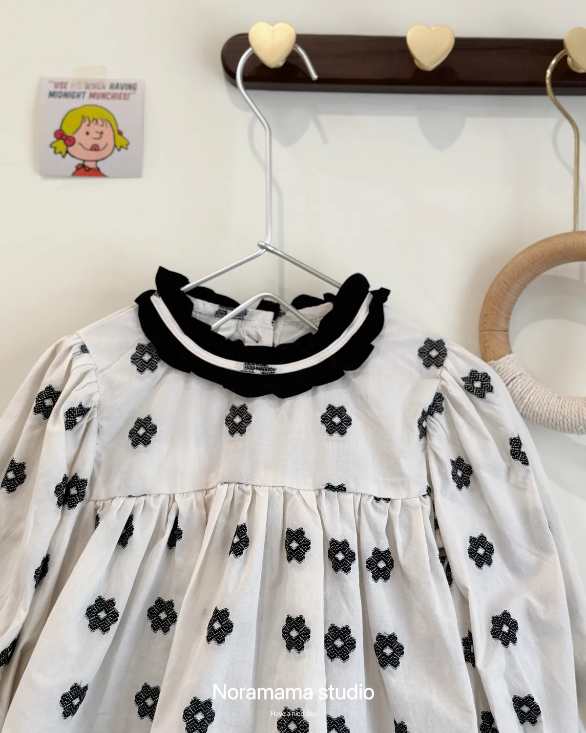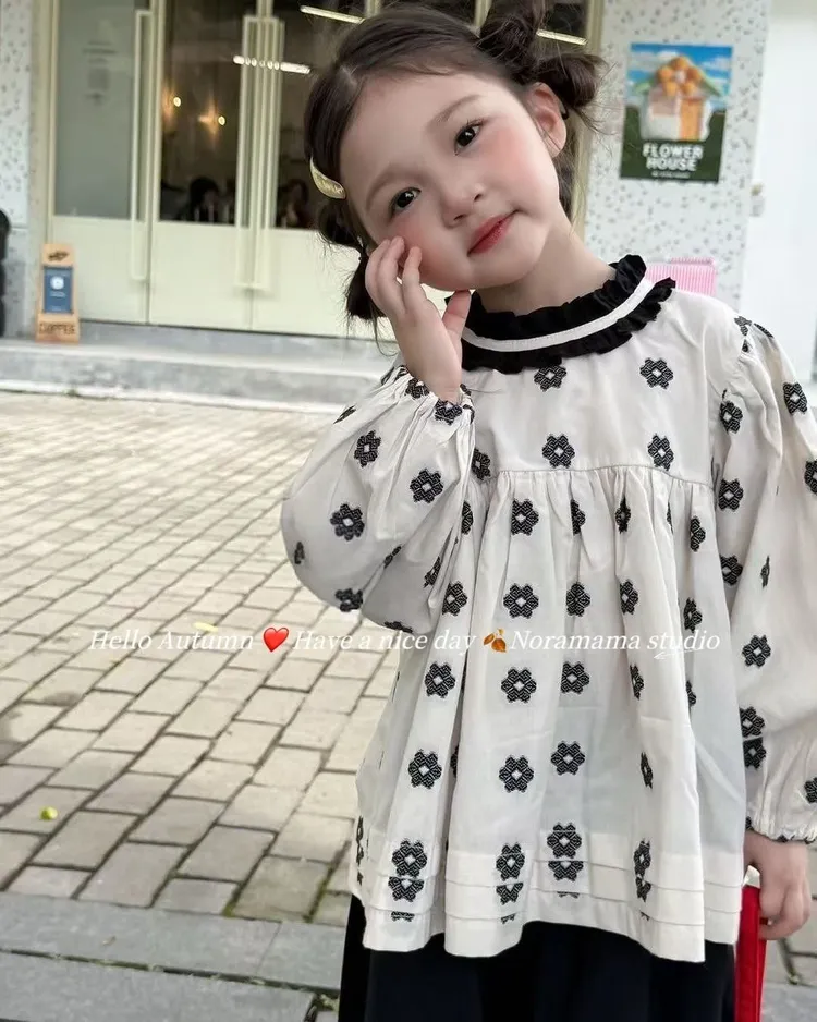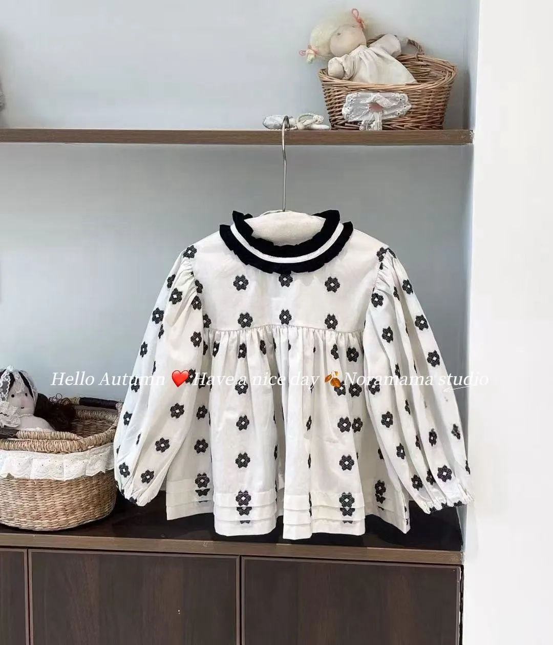 白底搭配黑花刺繡~質感細節滿滿❤️