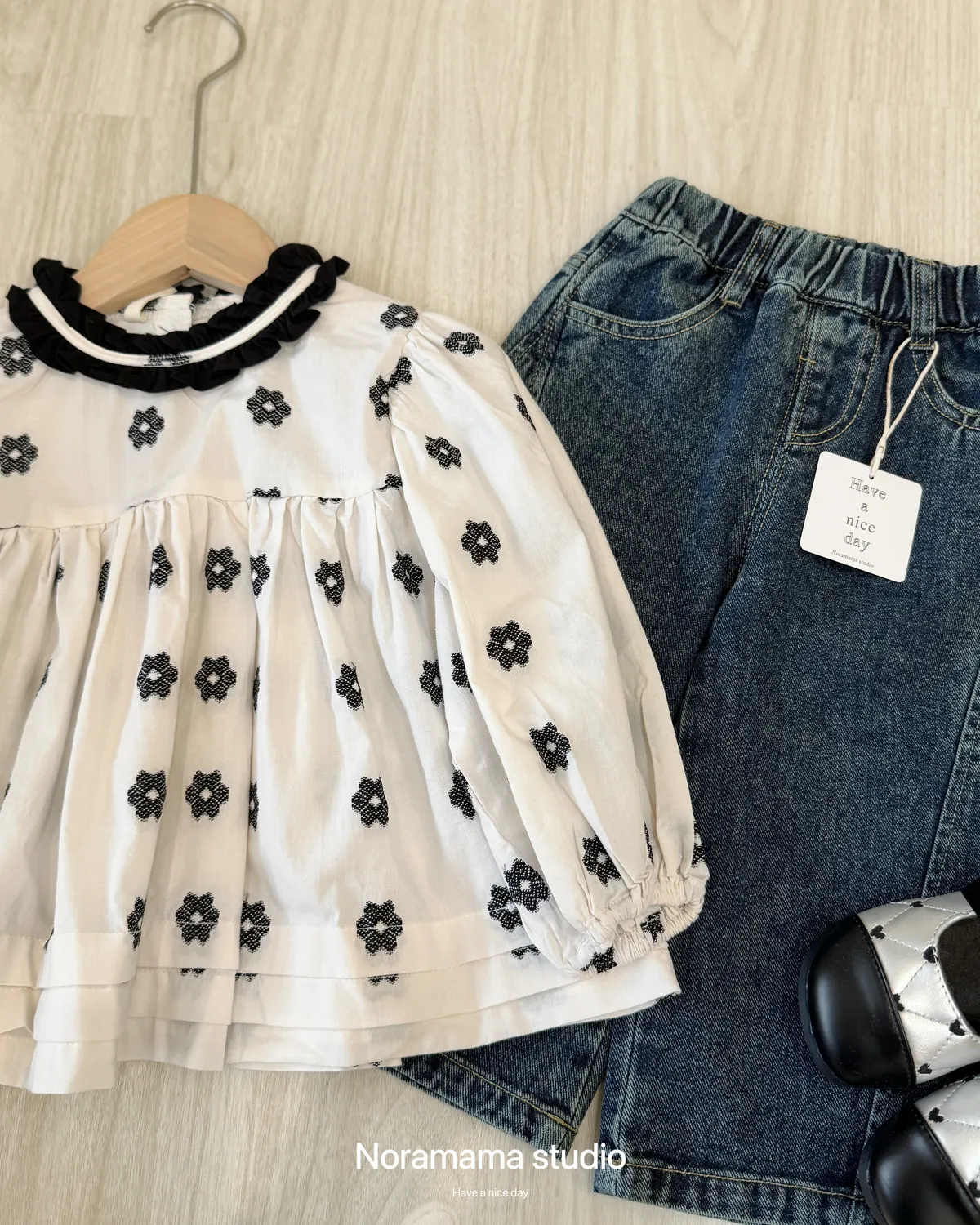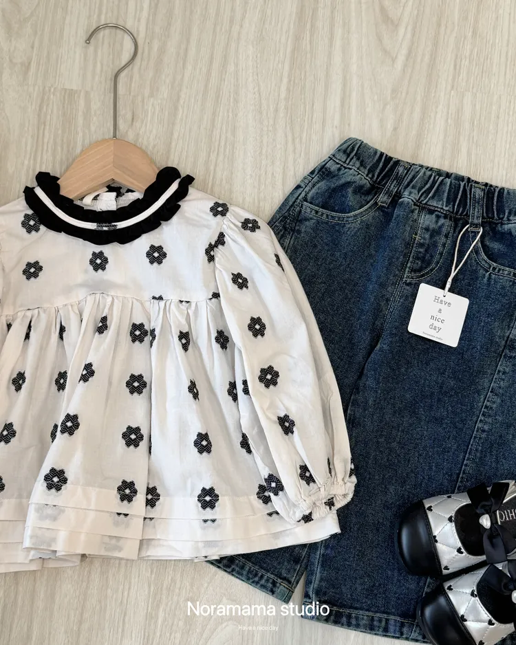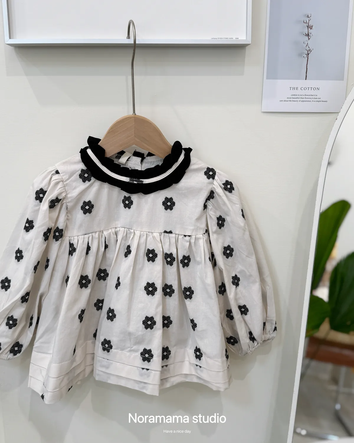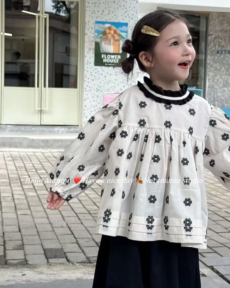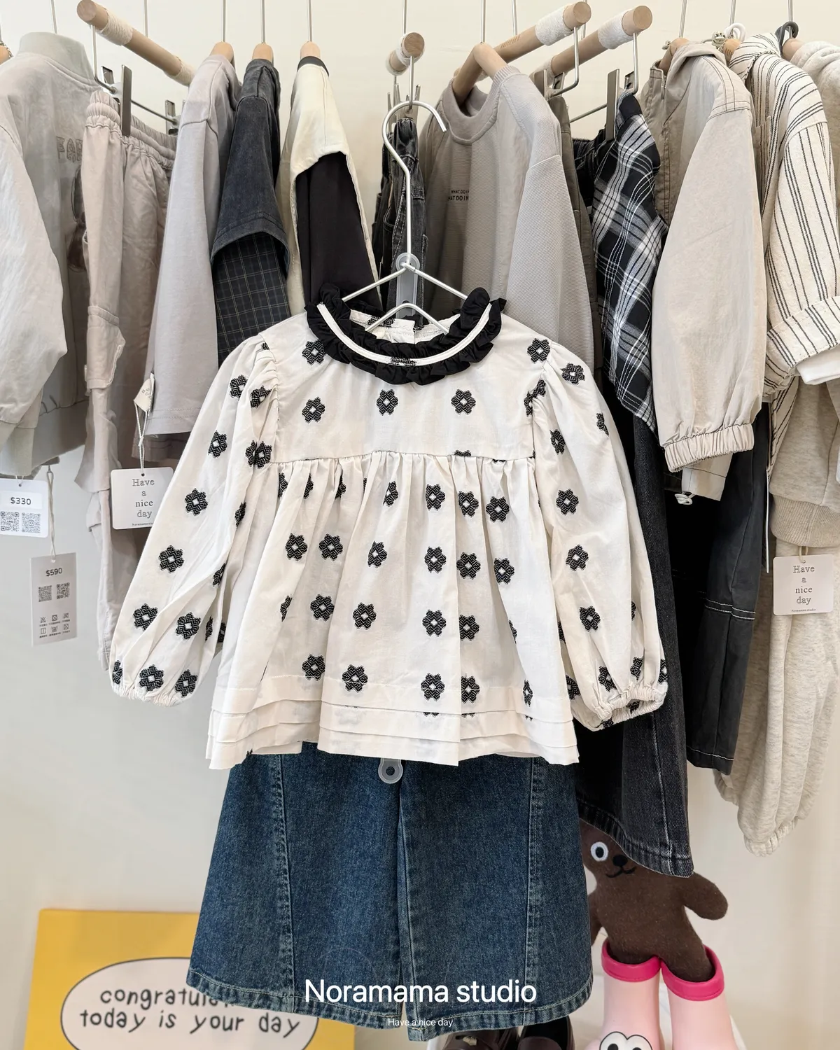 白底搭配黑花刺繡~質感細節滿滿❤️