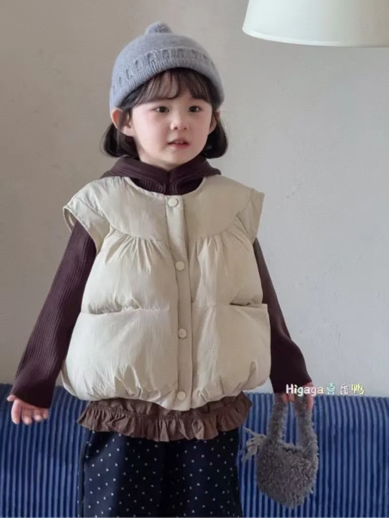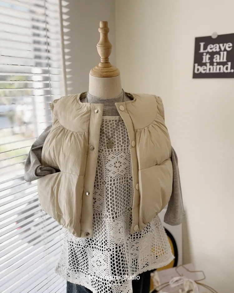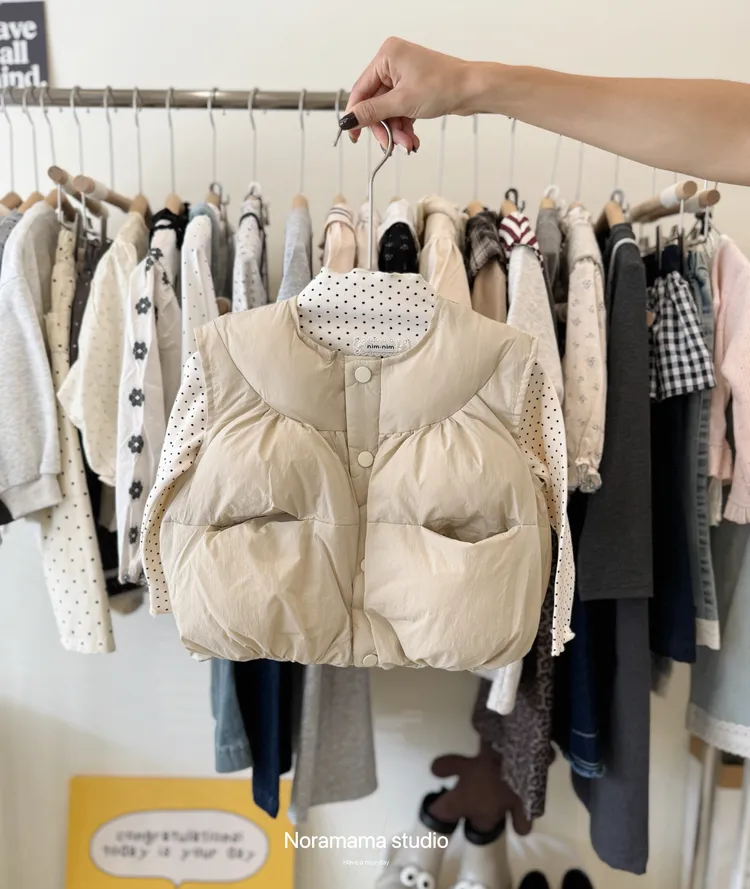 現貨/奶油澎澎感雙口袋夾棉背心
