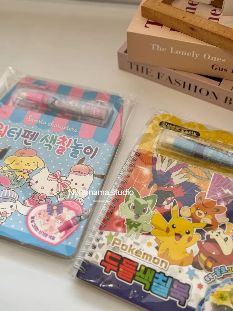 可以重複使用的韓國寶可夢水畫本貼紙遊戲書只要將筆裝水之後就可以開始畫畫囉~除了可以畫畫之外還有小遊戲內頁及貼紙可以配對、解謎是一本很豐富的遊戲書❤️☑️內容:水畫紙6頁、小遊戲6頁、貼紙2頁、水筆1支☑️尺寸:約19x24cm☑️韓國製