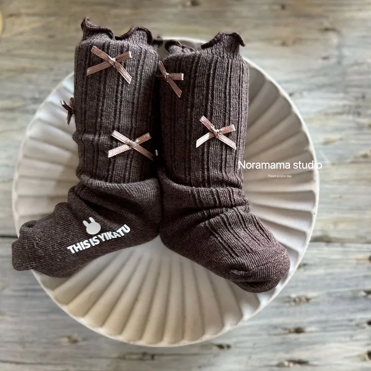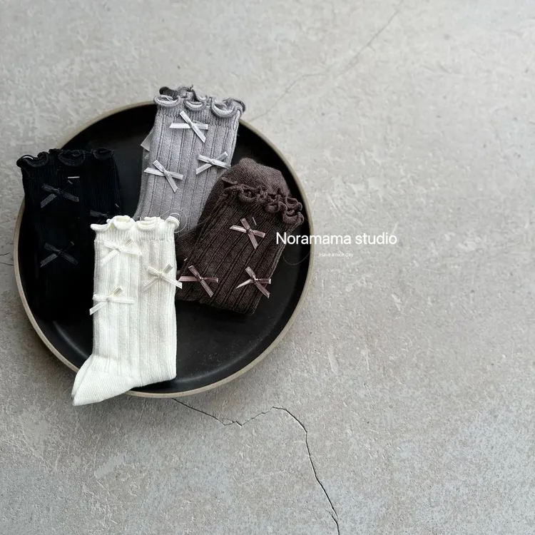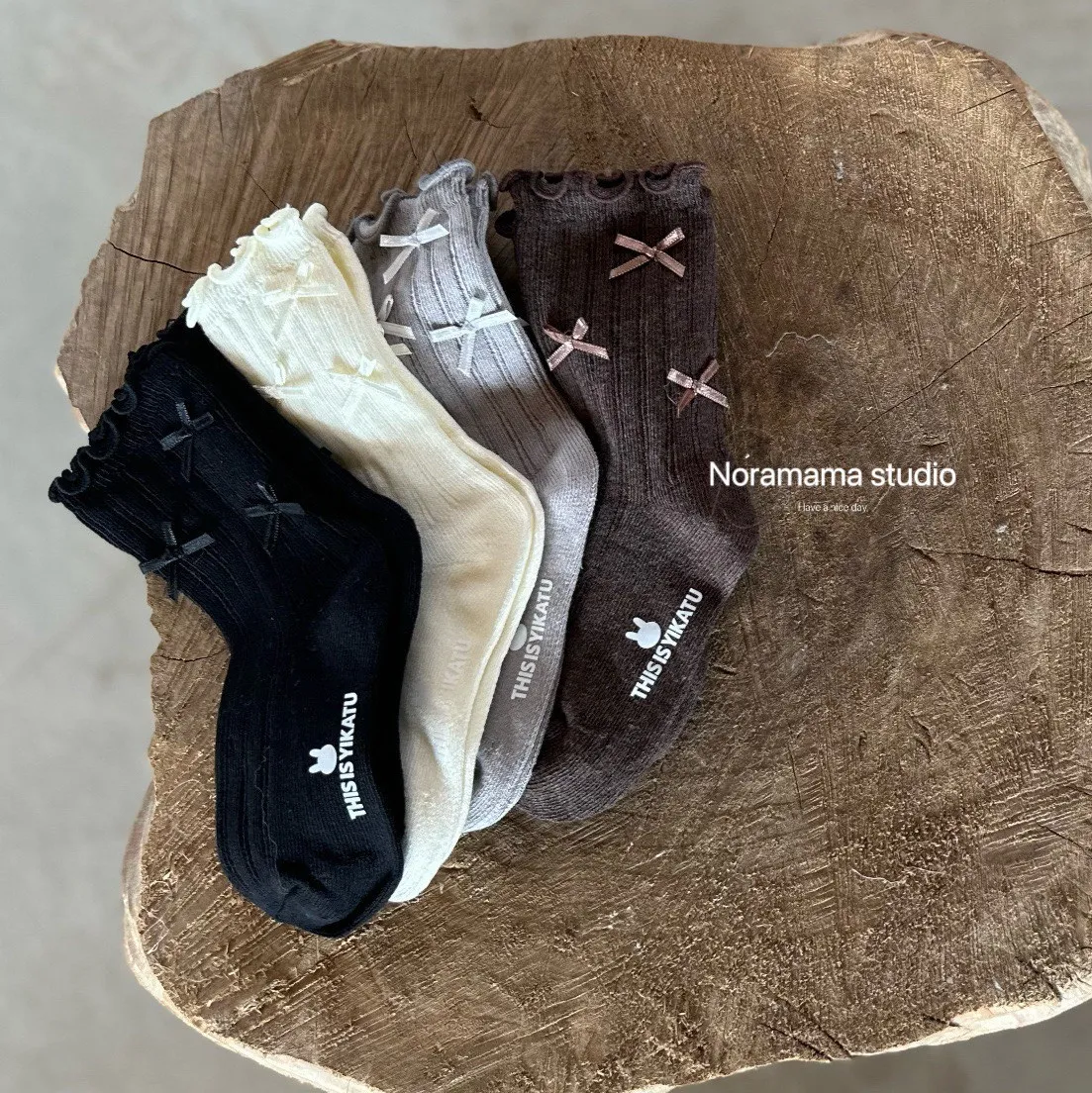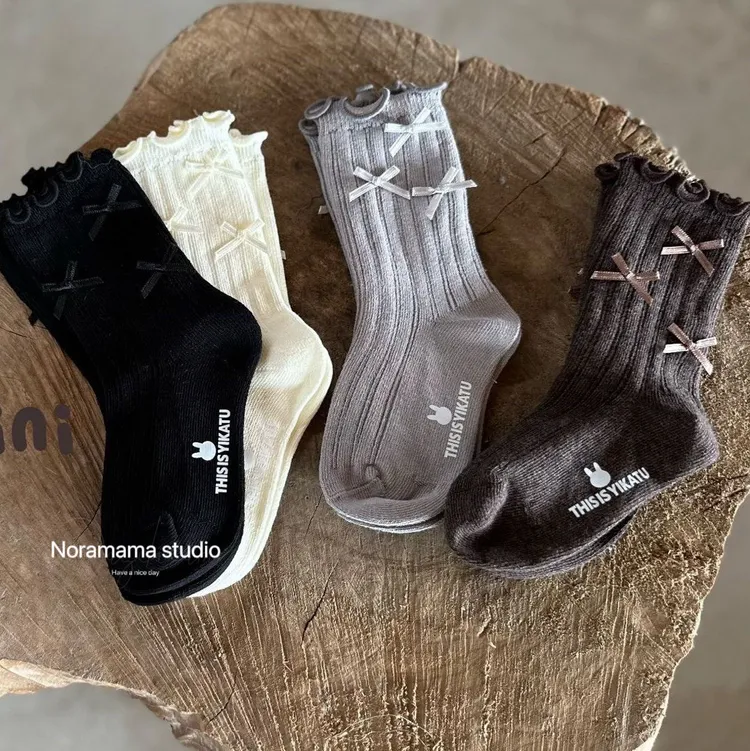 現貨/小蝴蝶結木耳邊中筒襪(4入組)