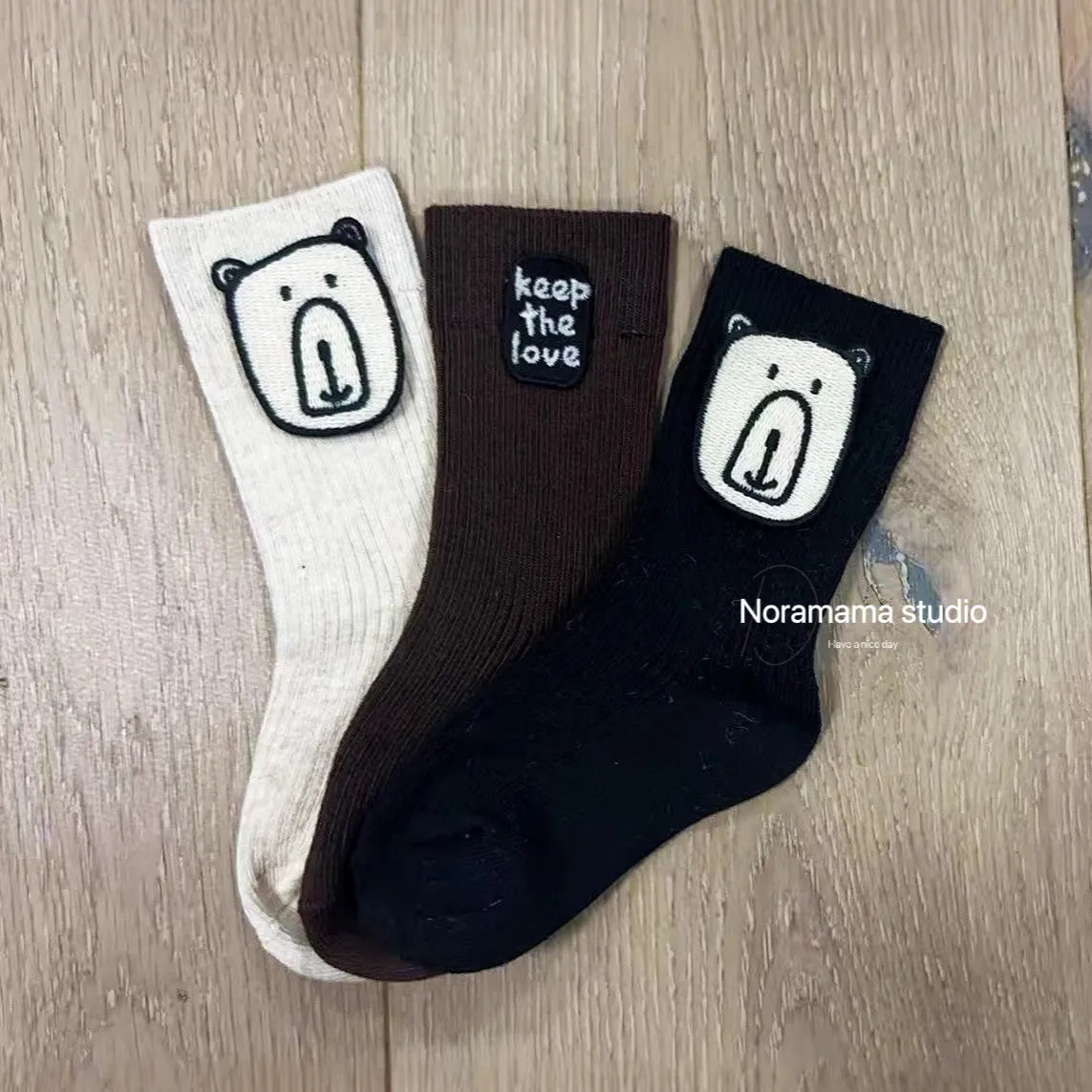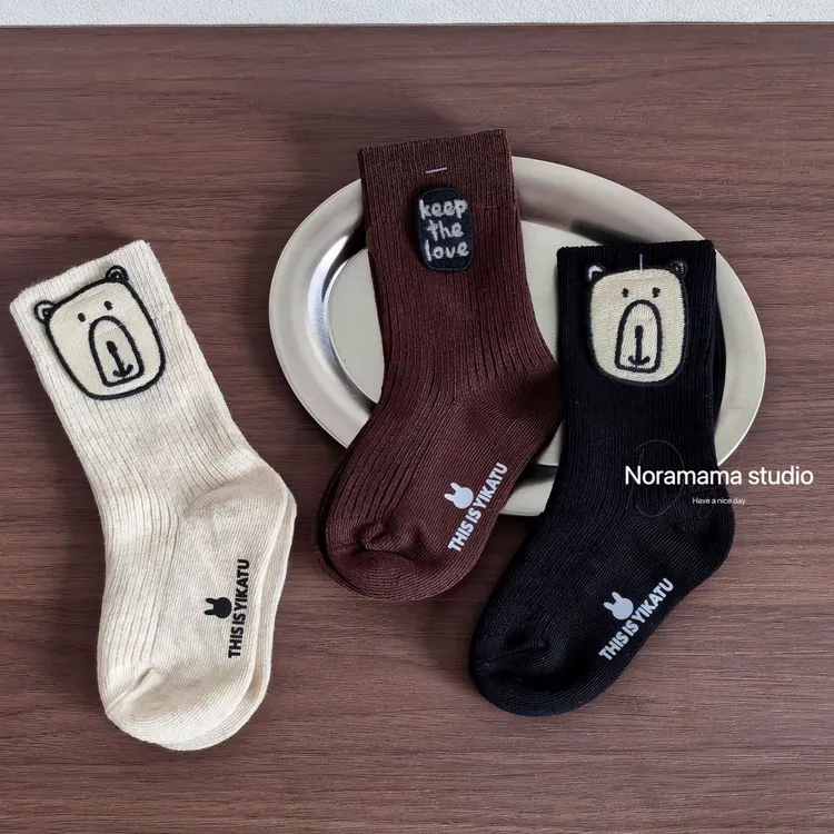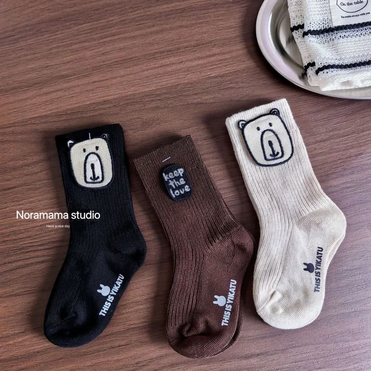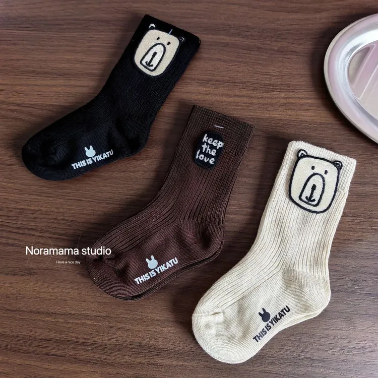 現貨/小熊字母布標中筒襪(3入組)
