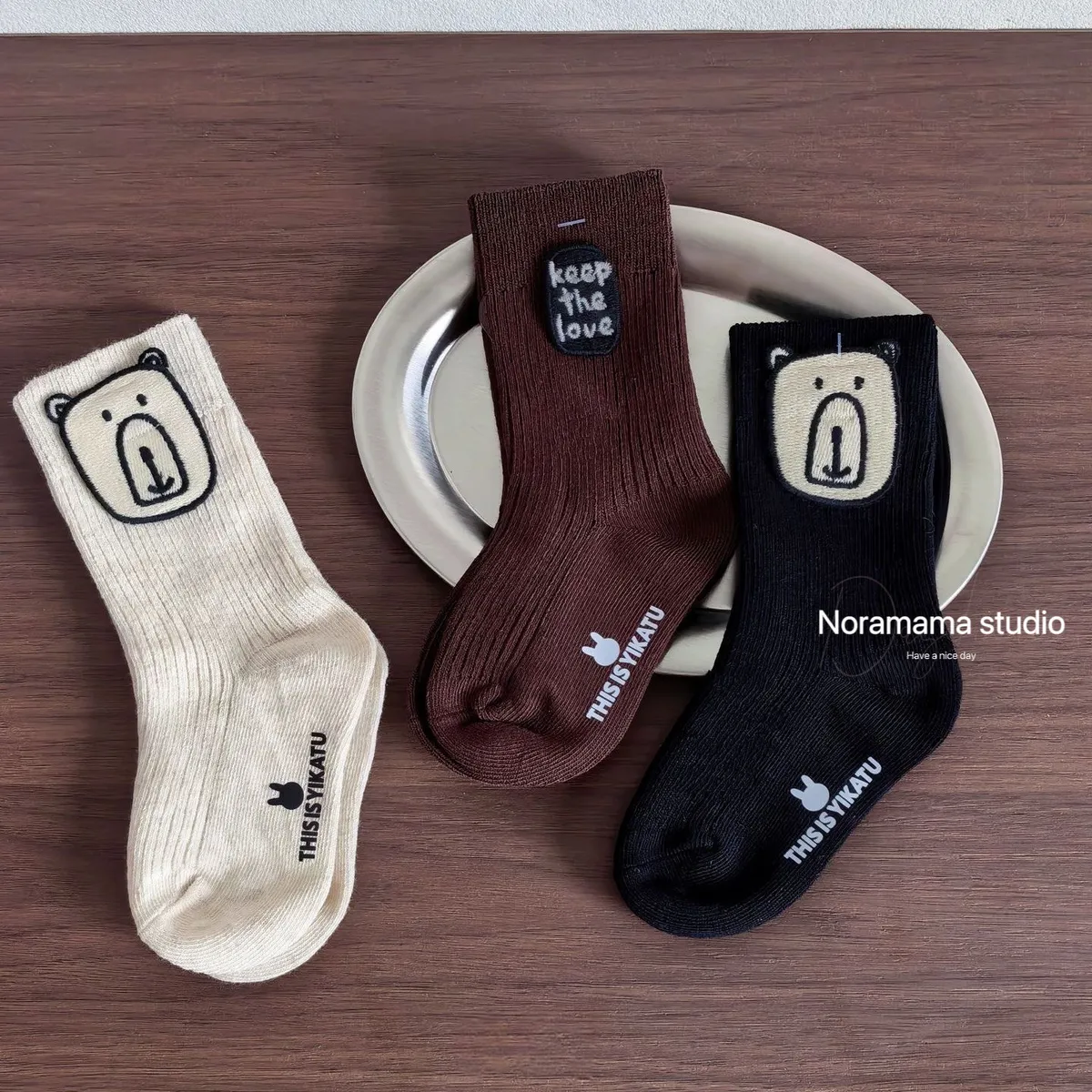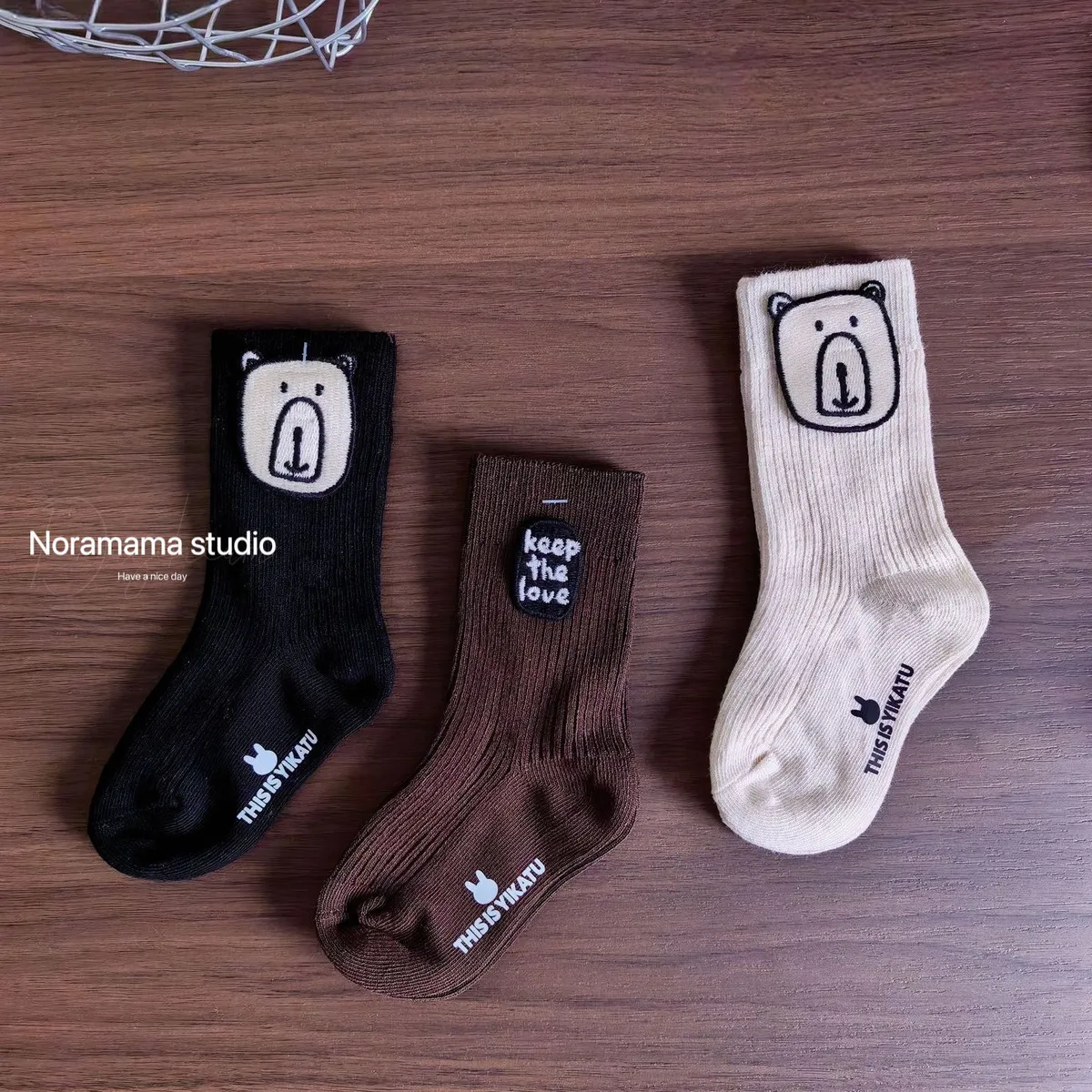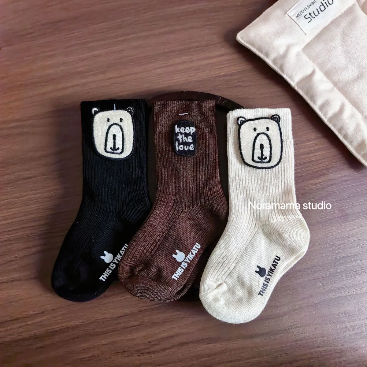 現貨/小熊字母布標中筒襪(3入組)