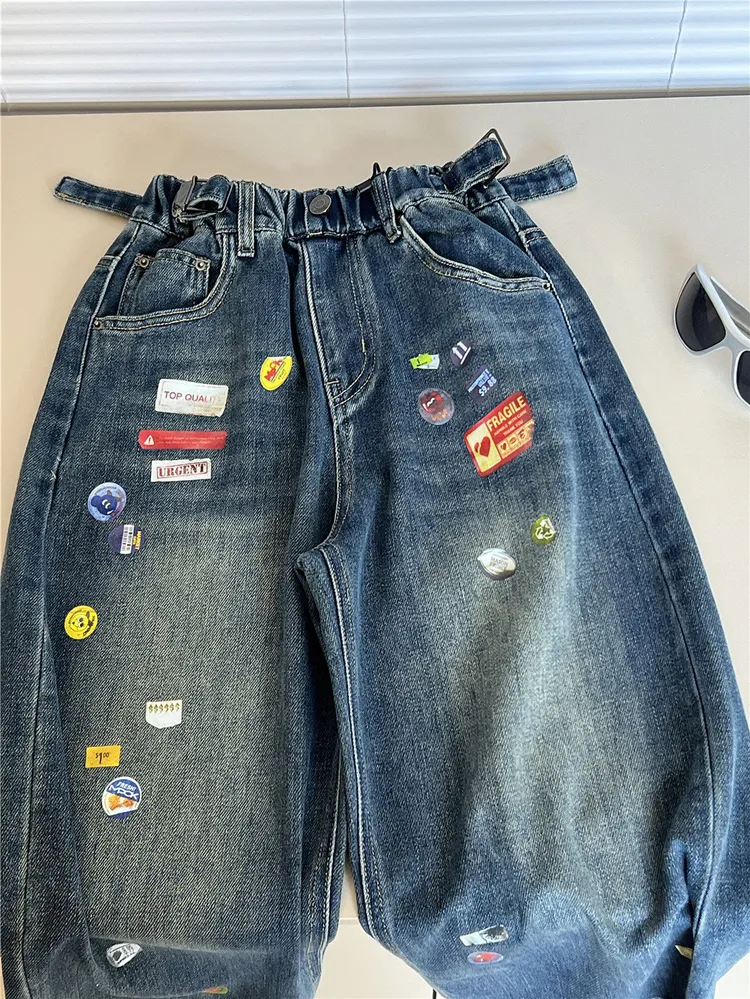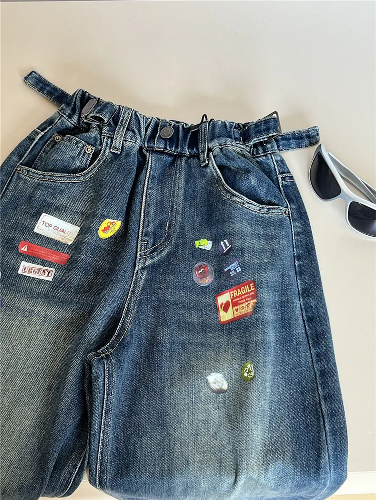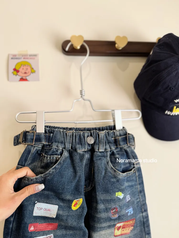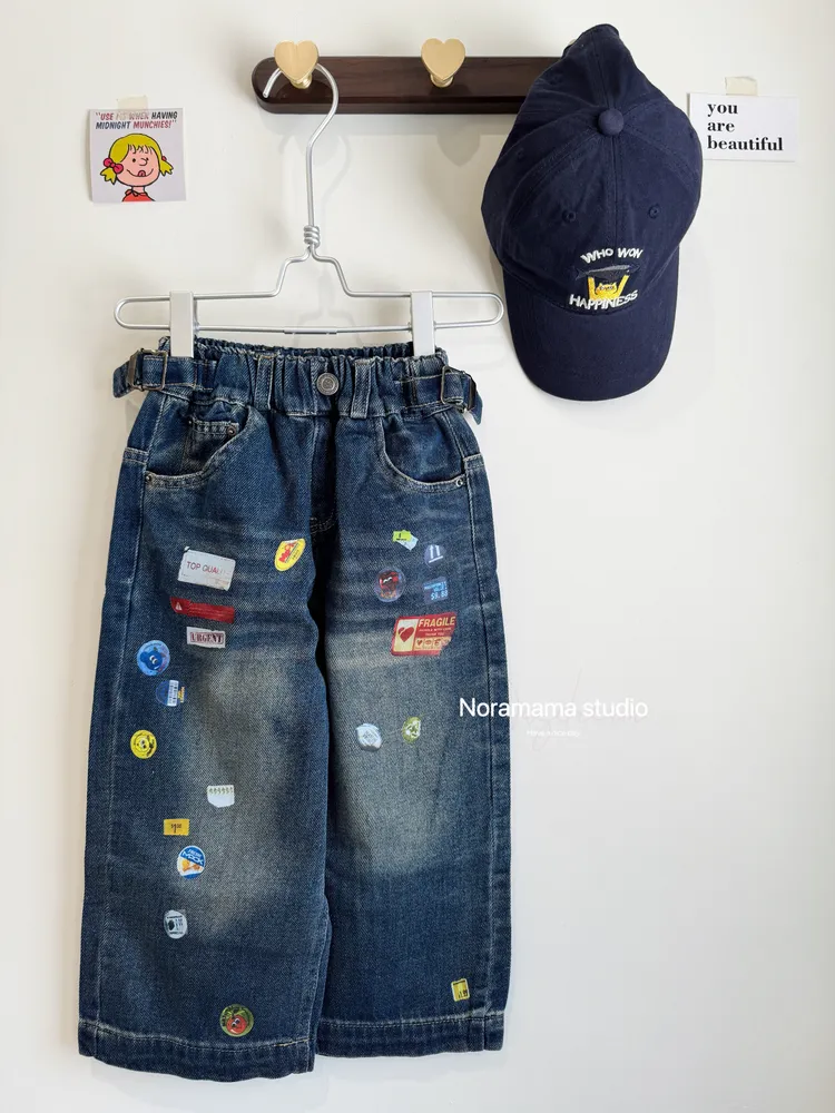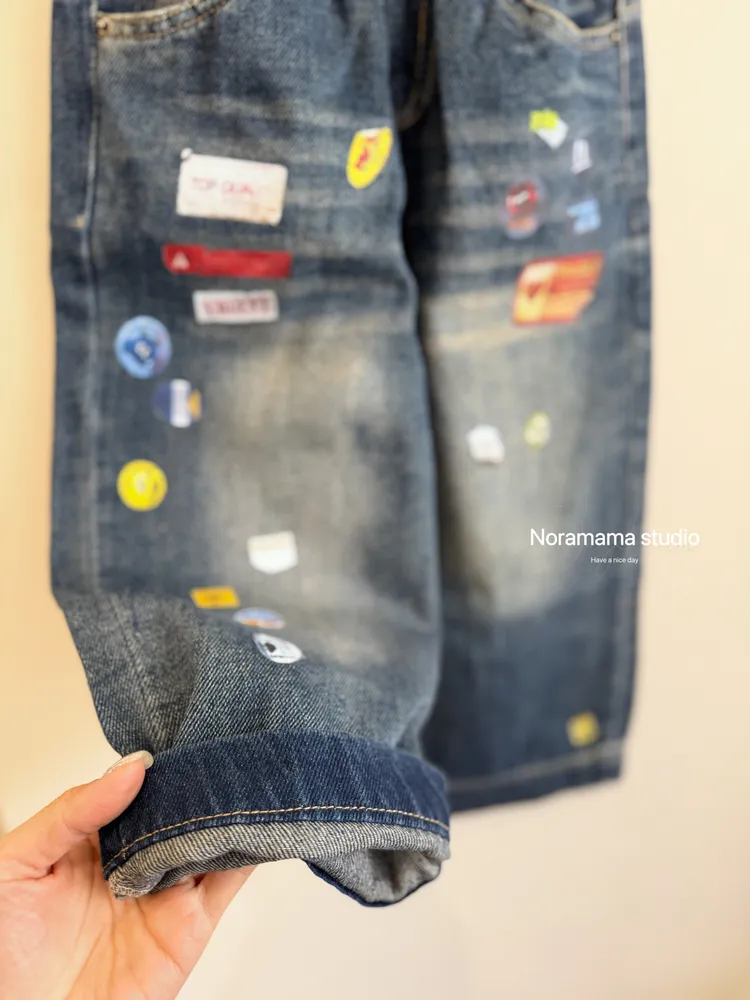 現貨/超帥!美式彩色貼紙直筒牛仔褲(四季款)