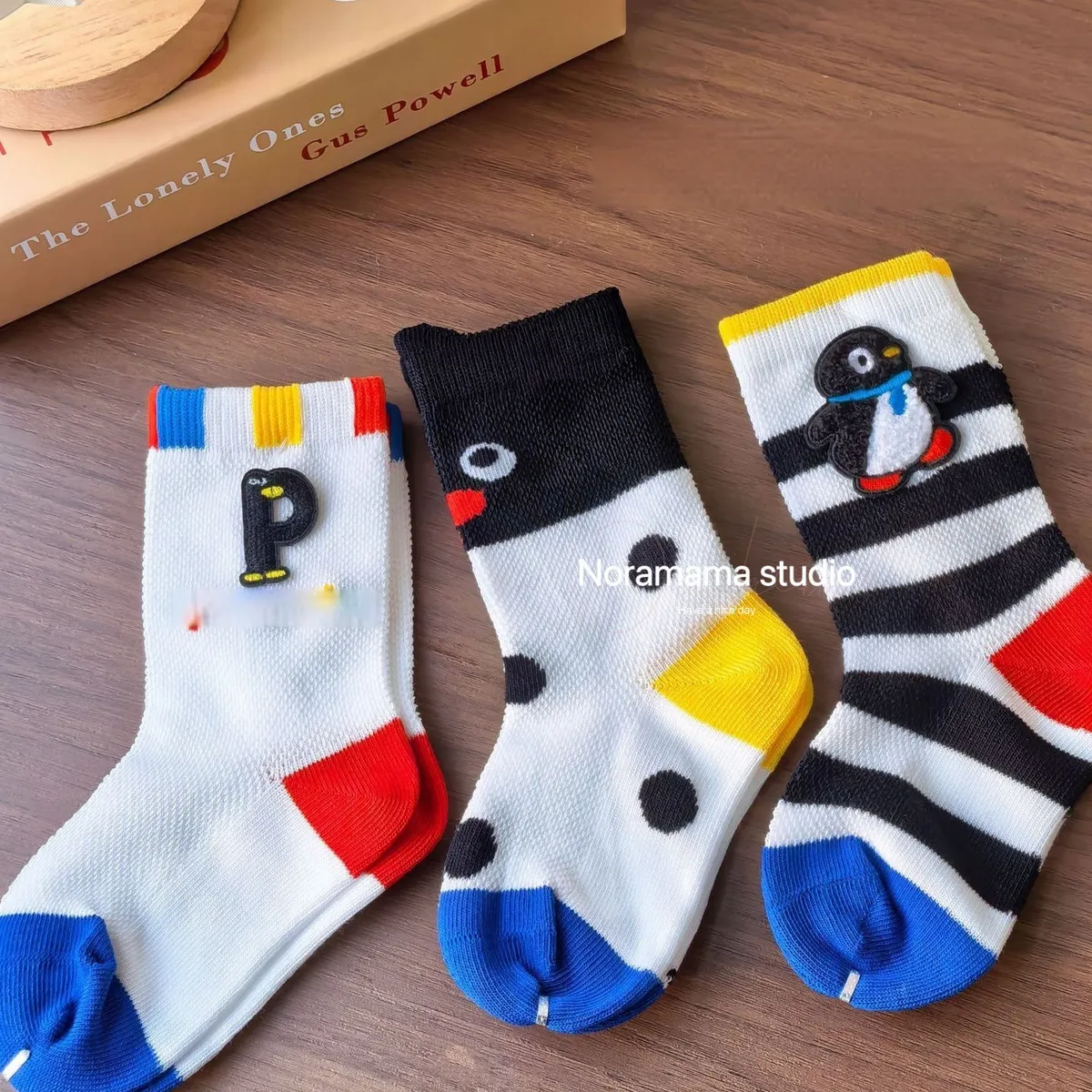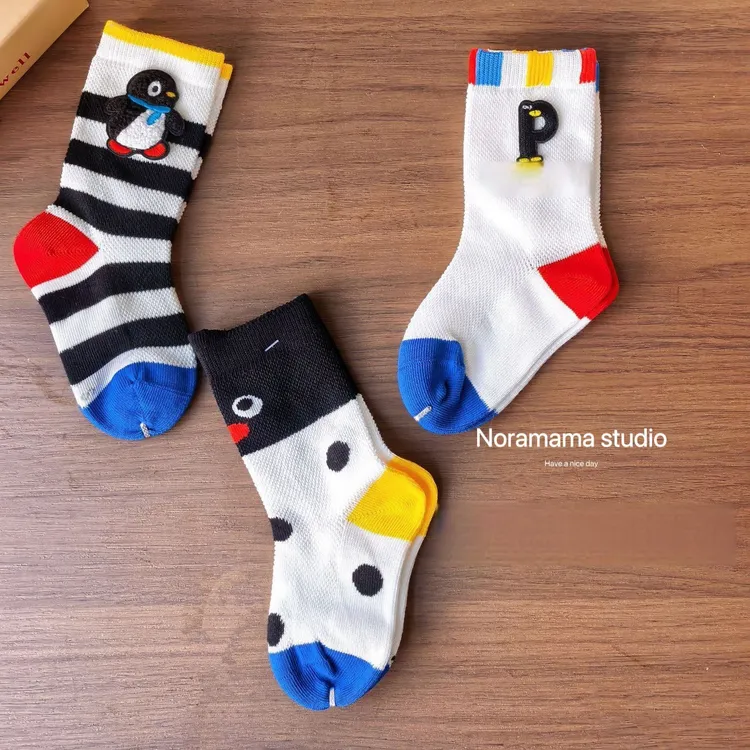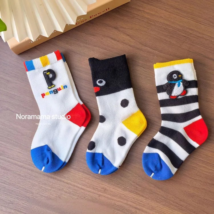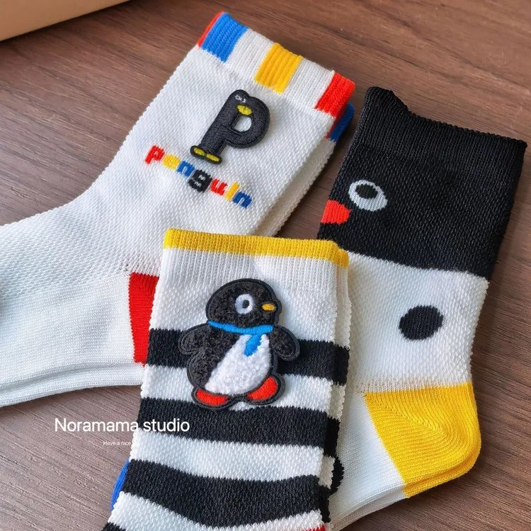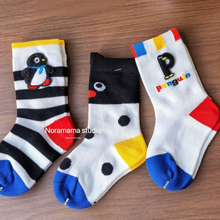 現貨/繽紛企鵝透氣中筒襪(3入組)