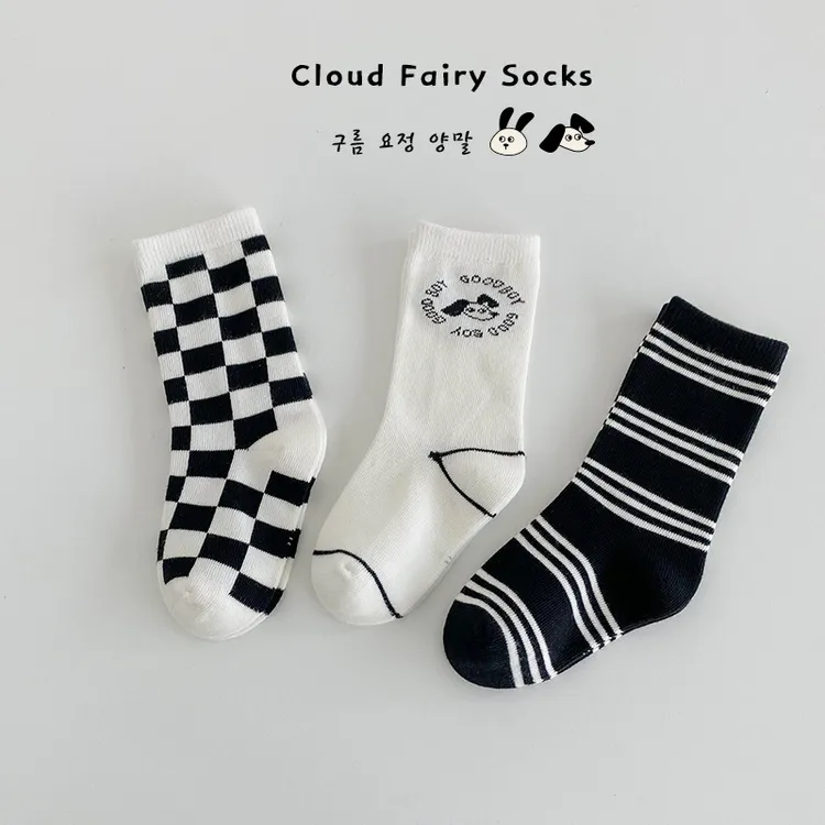 1510簡約黑白圓點中筒襪(3入組)