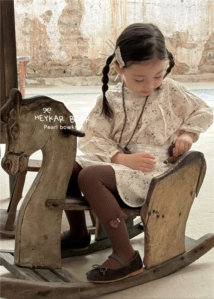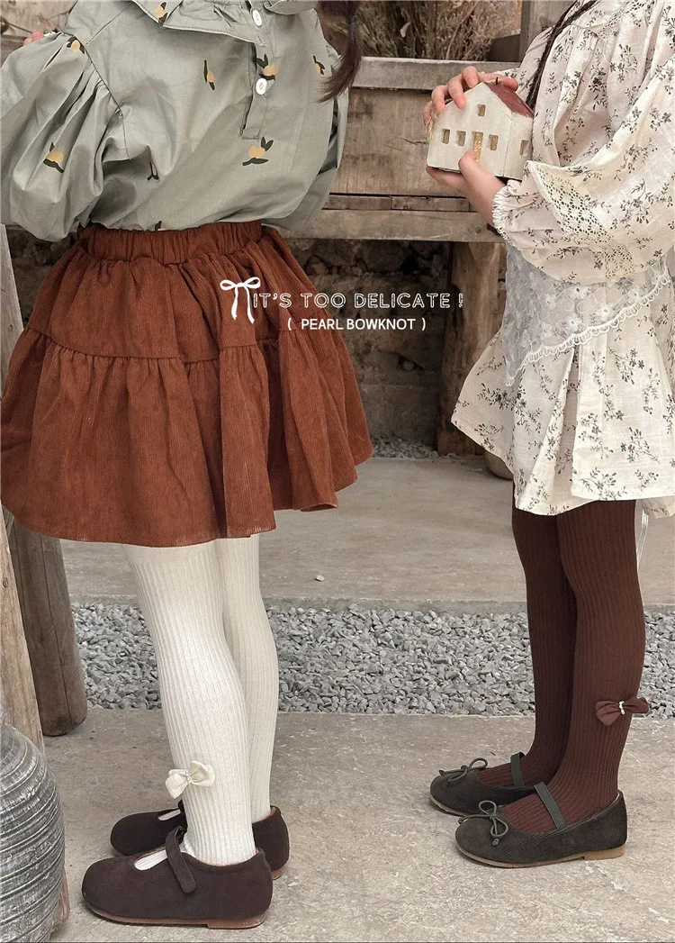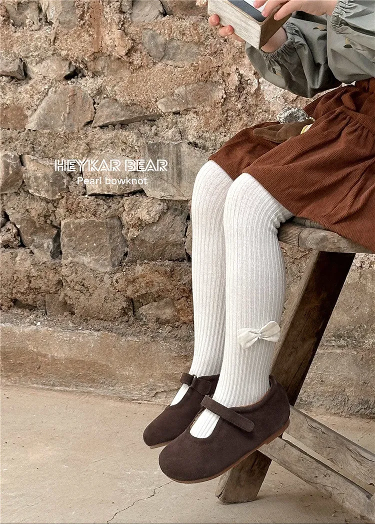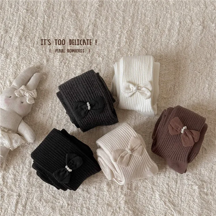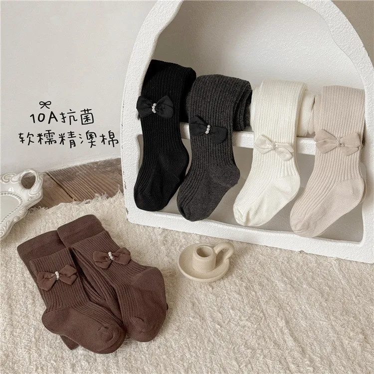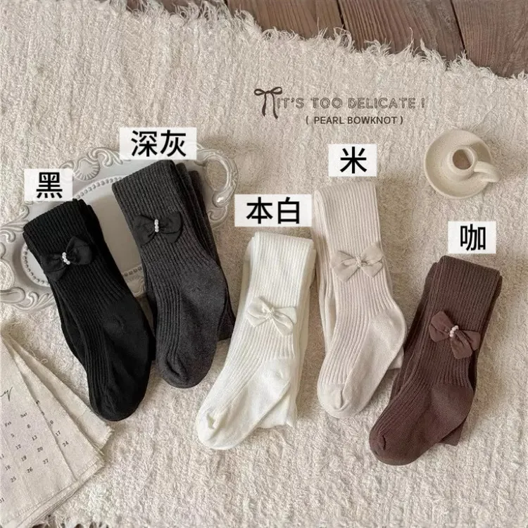 純色繞珠蝴蝶結連身褲襪-5色