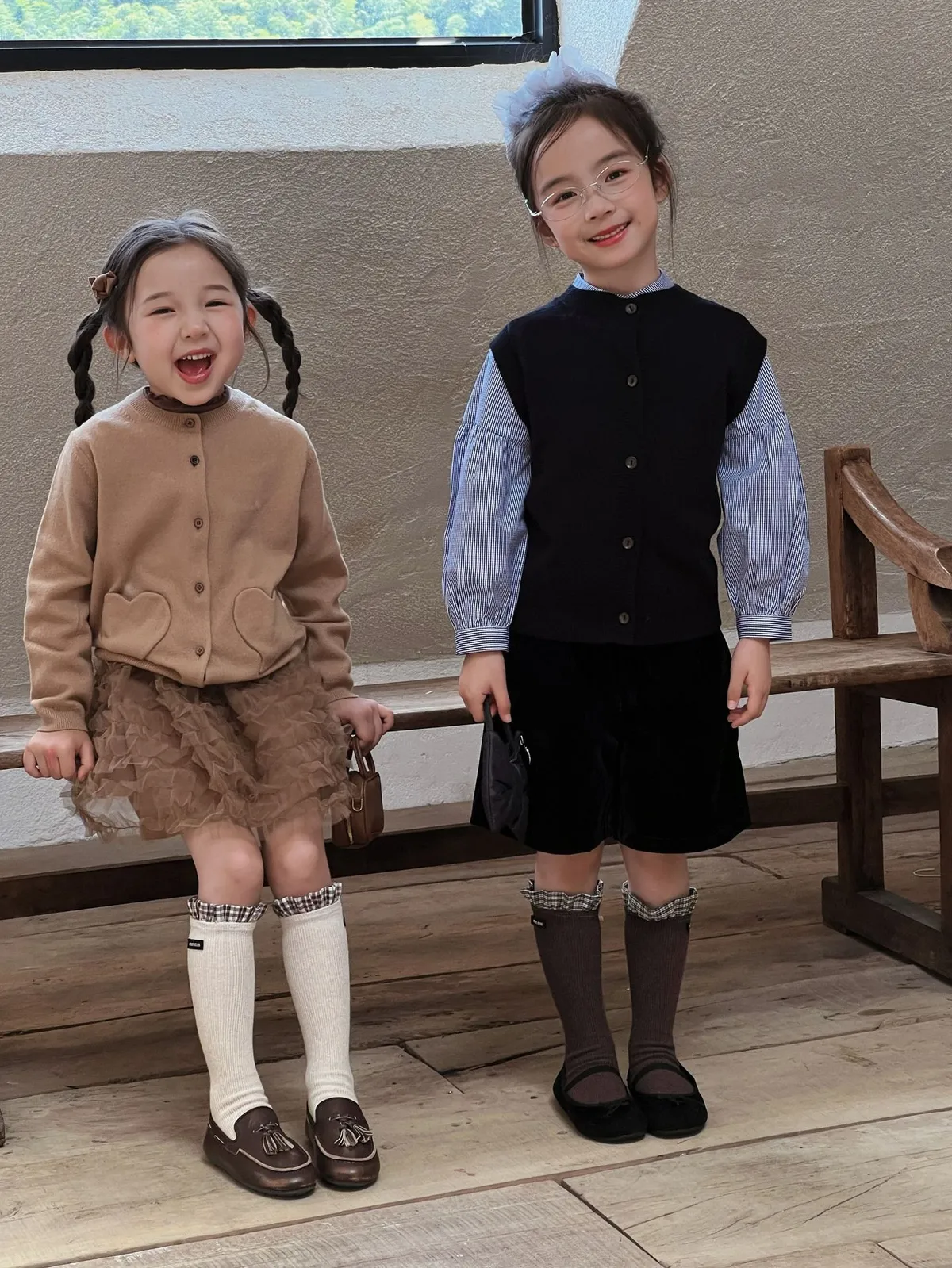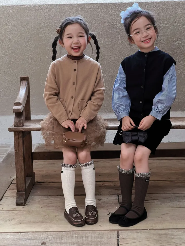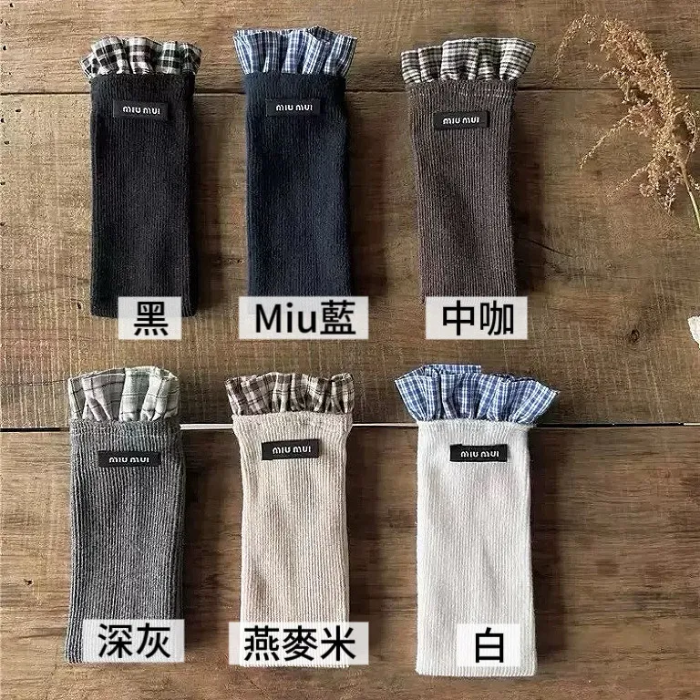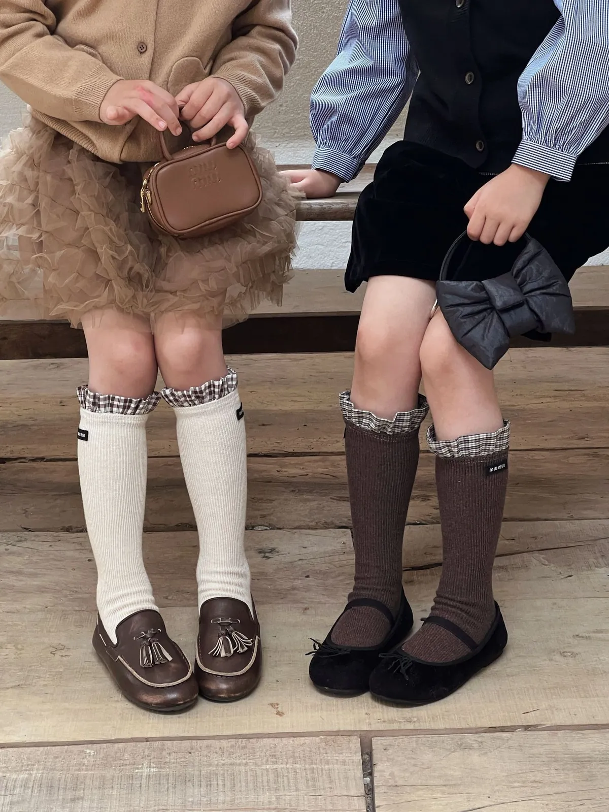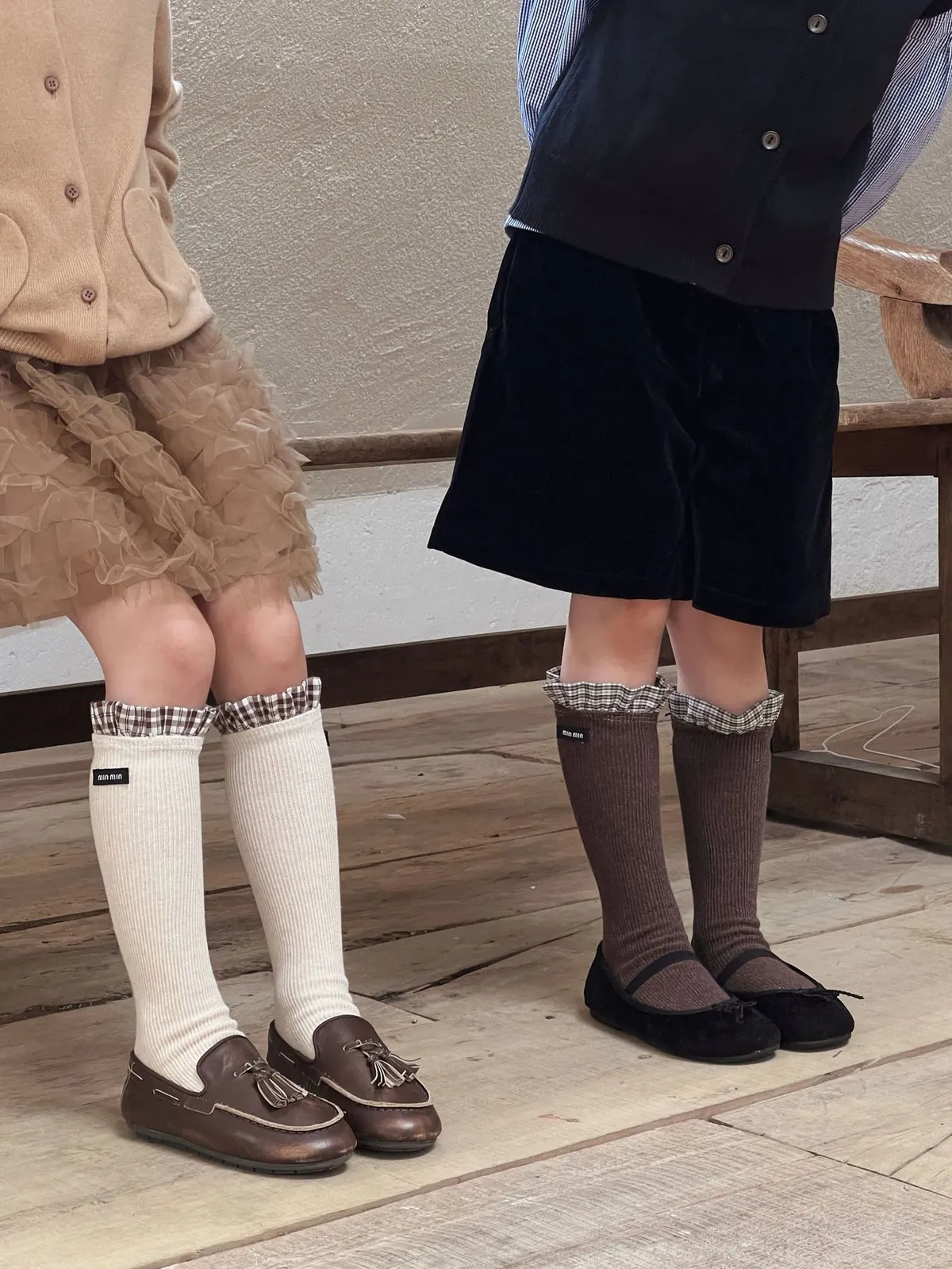 精緻格紋蕾絲布中筒堆堆襪(6入組)