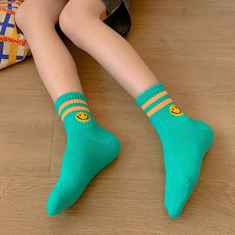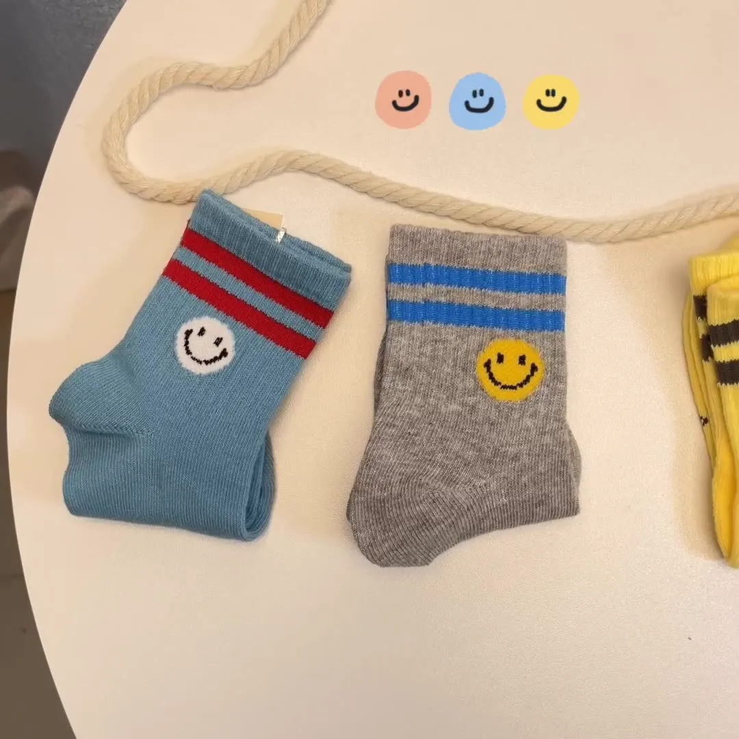 日系條紋笑臉中筒襪(5入組)