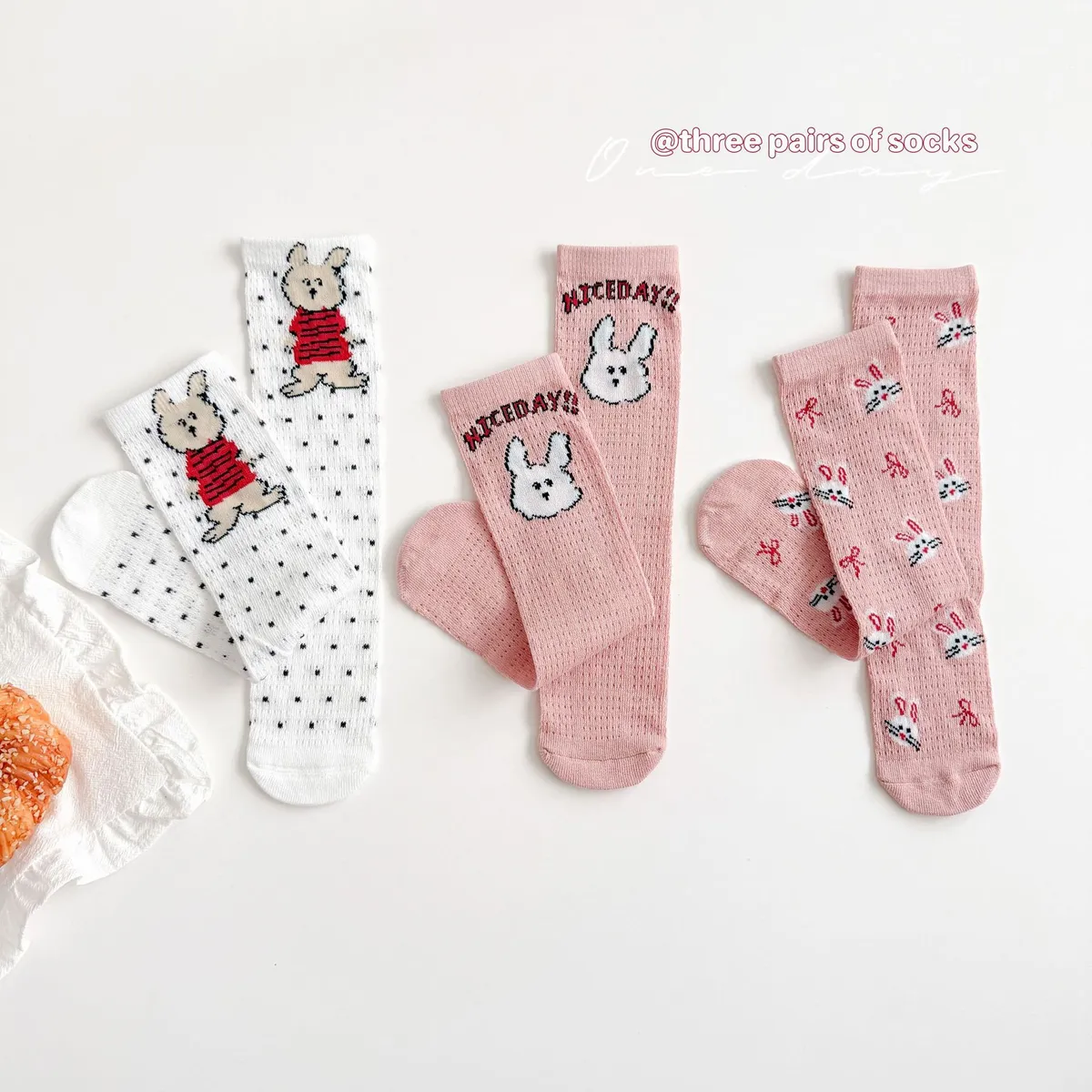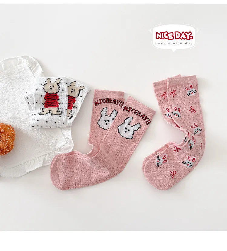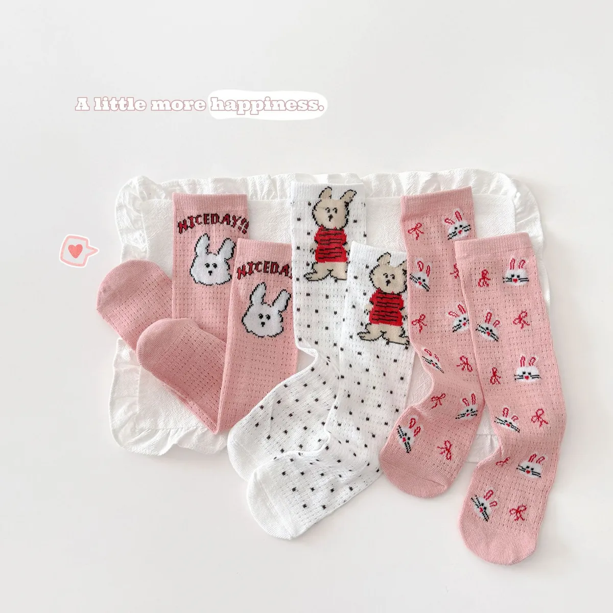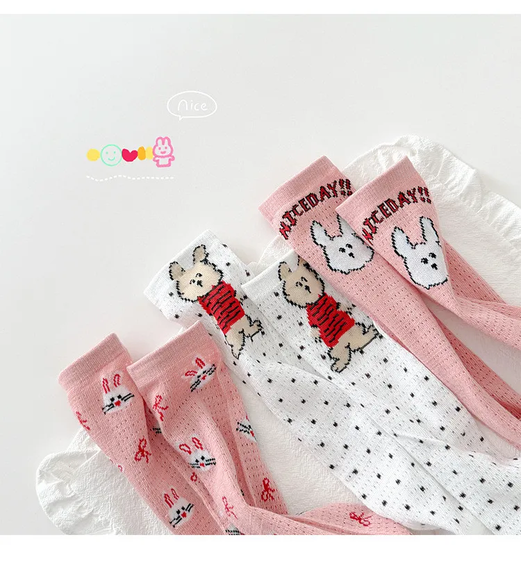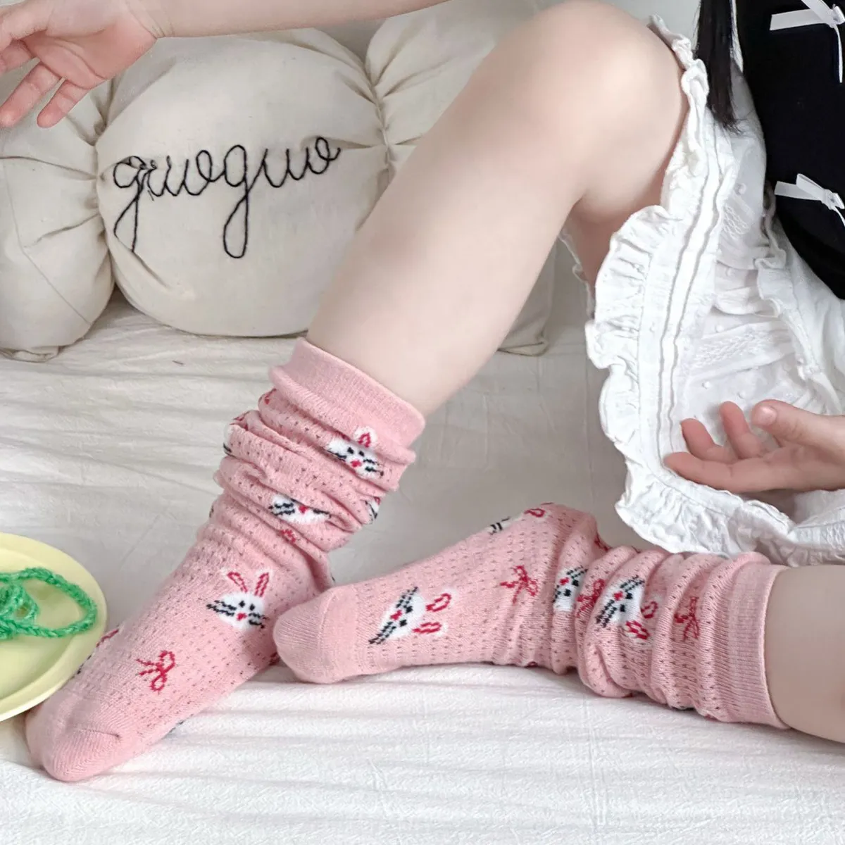 網眼款#甜美紅耳兔兔小腿堆堆襪(3入組)