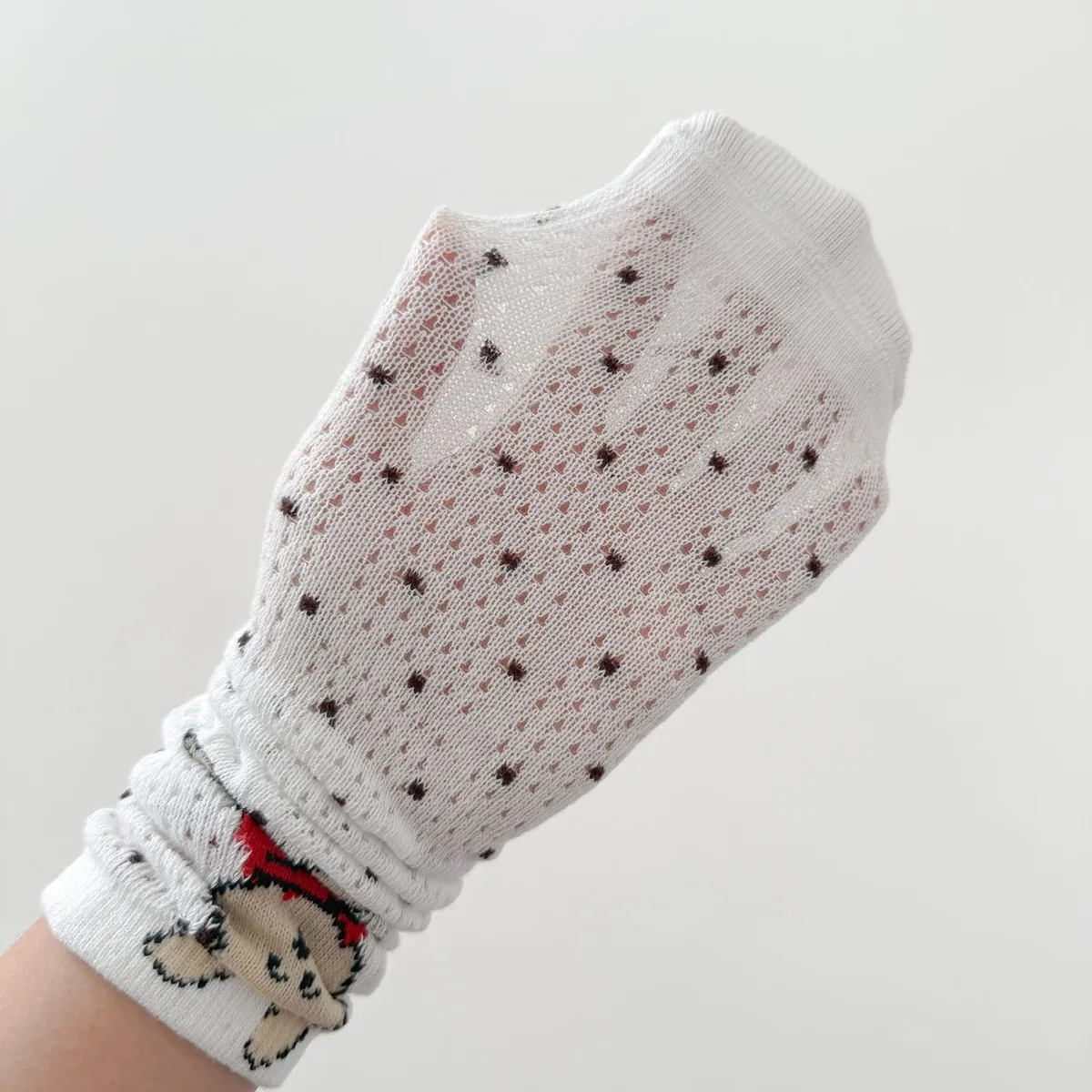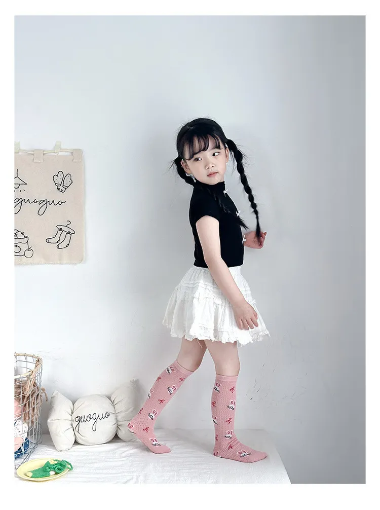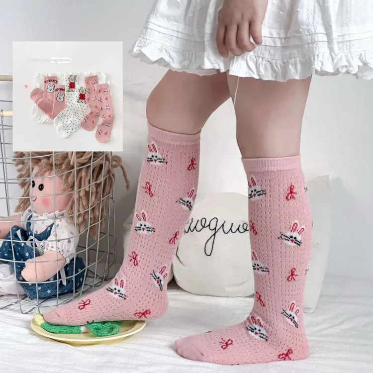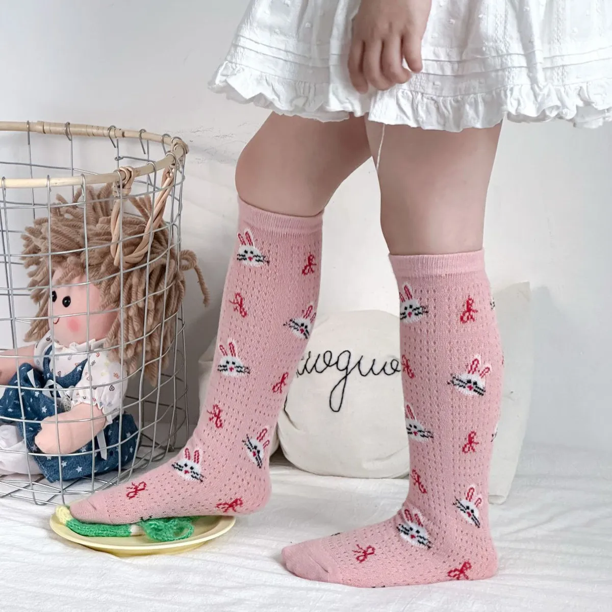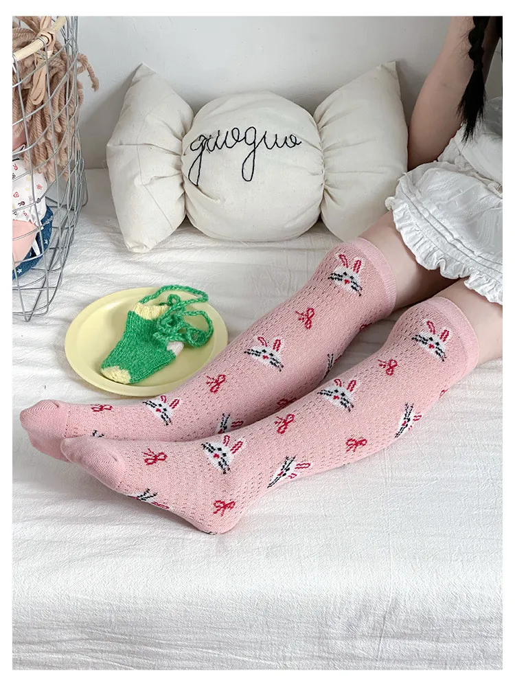 網眼款#甜美紅耳兔兔小腿堆堆襪(3入組)