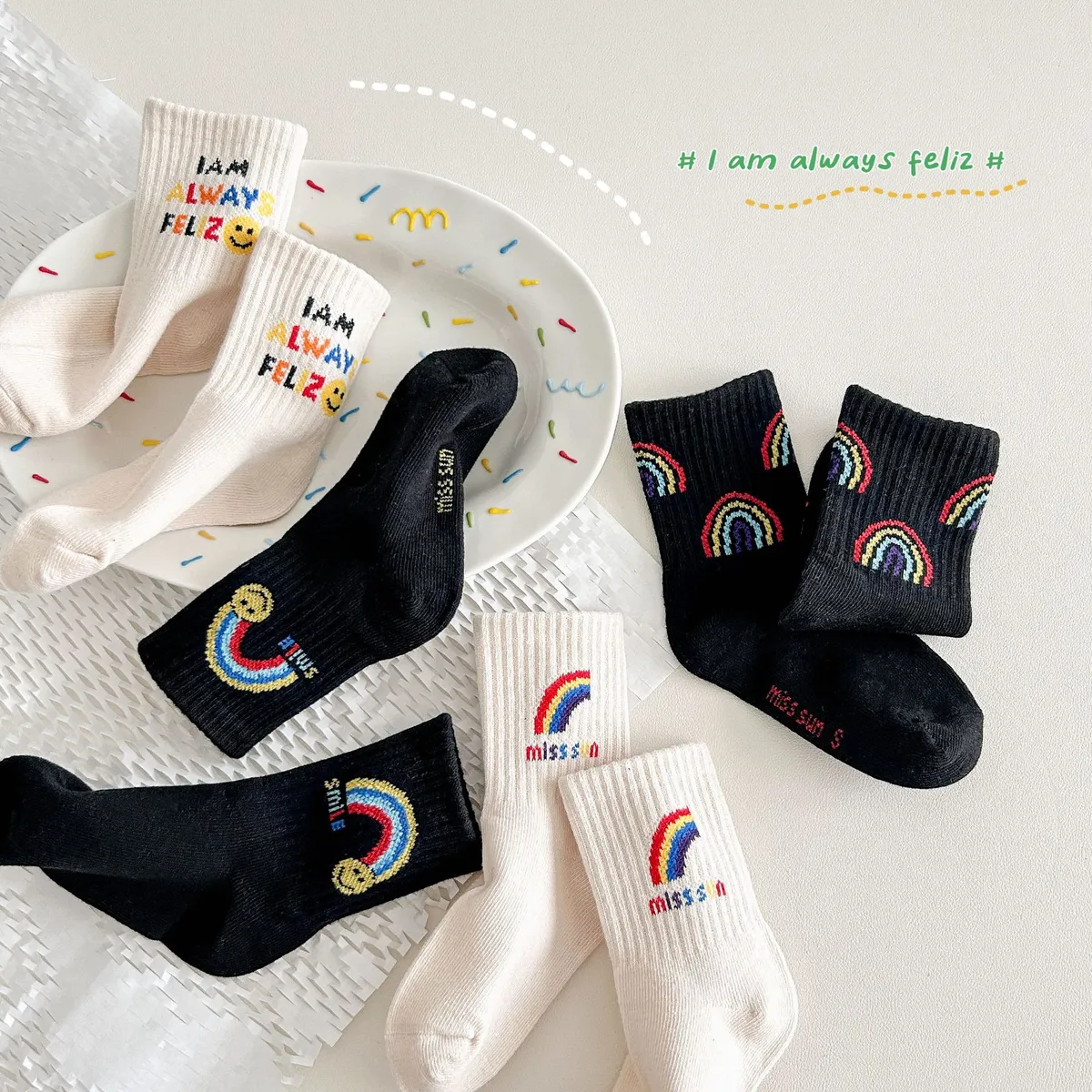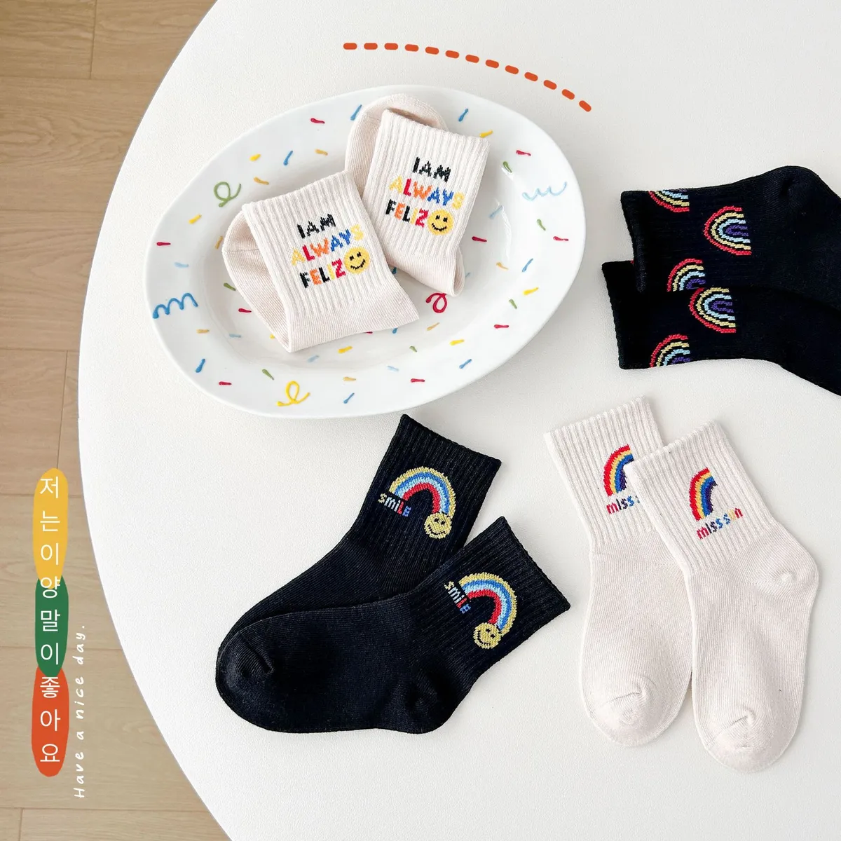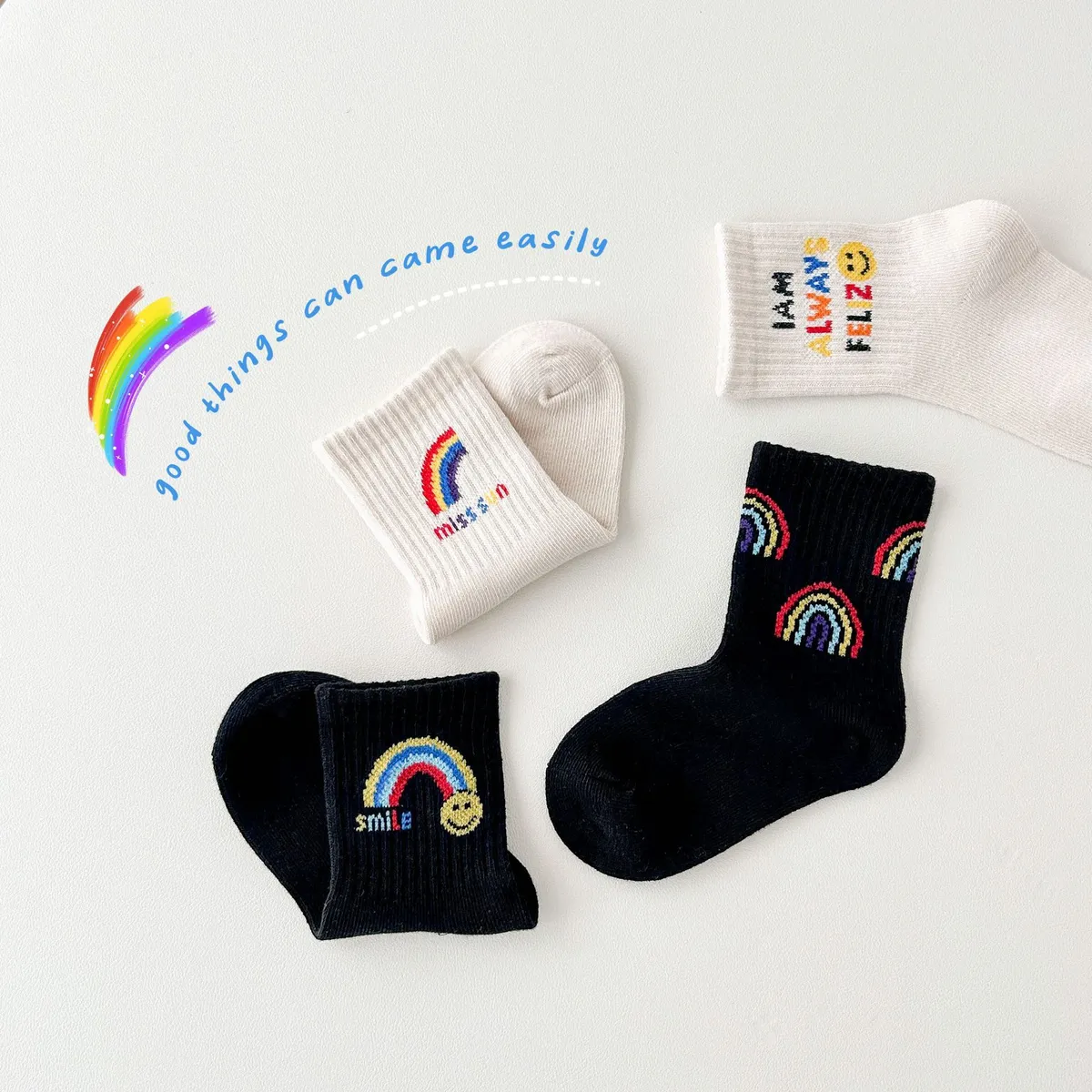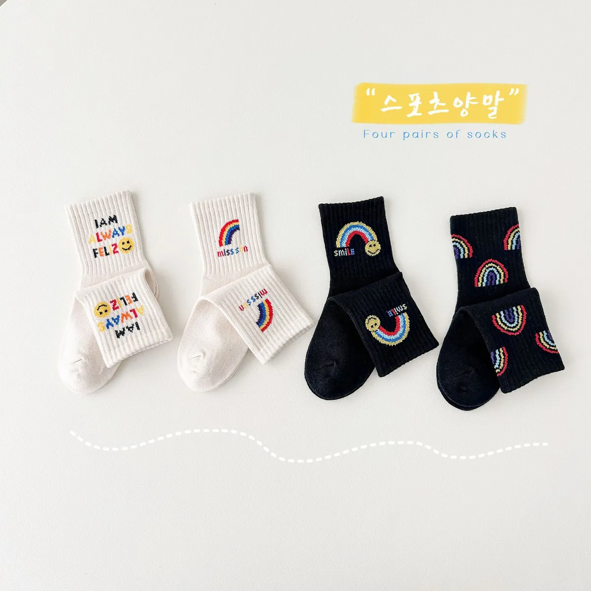 彩虹笑臉中筒襪(4入組)