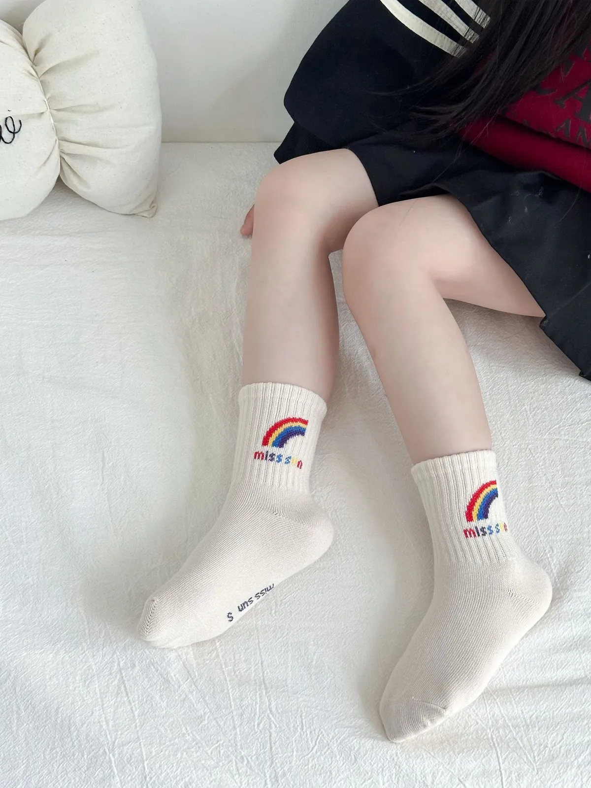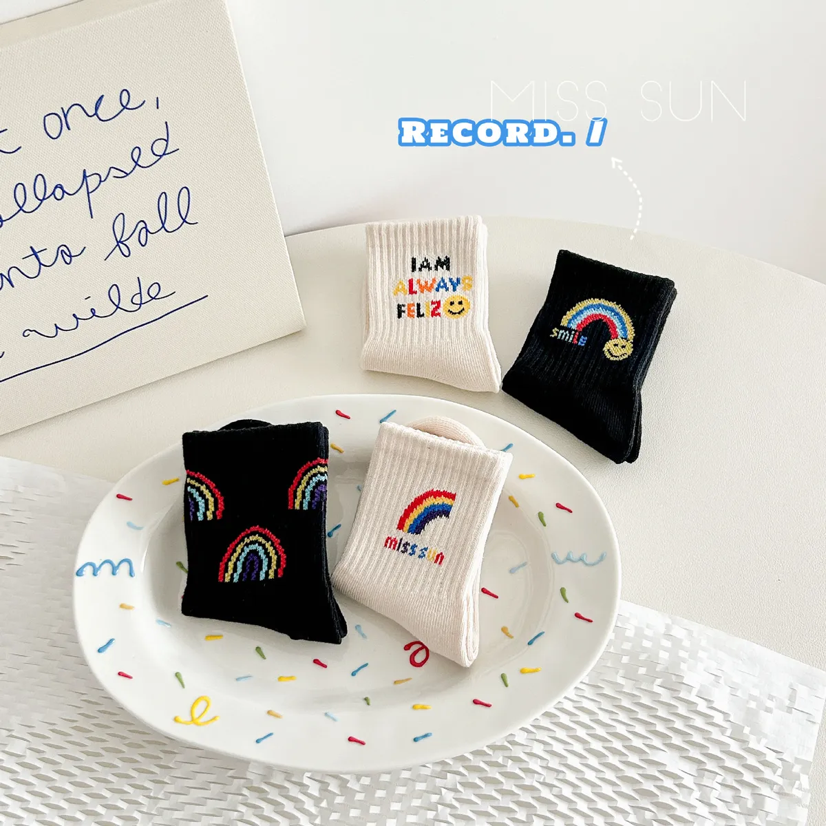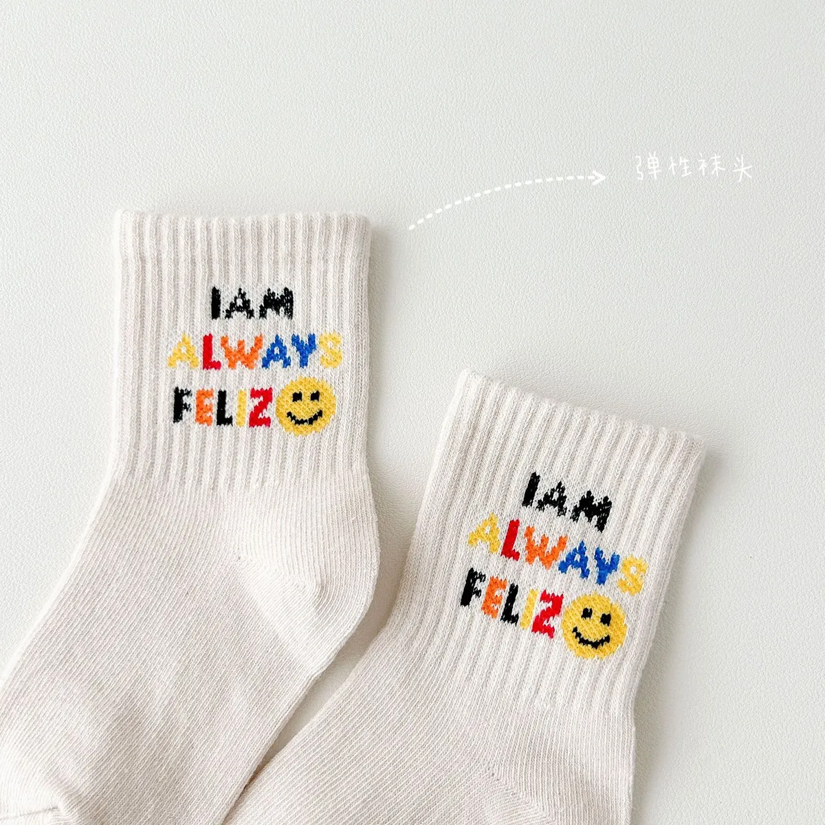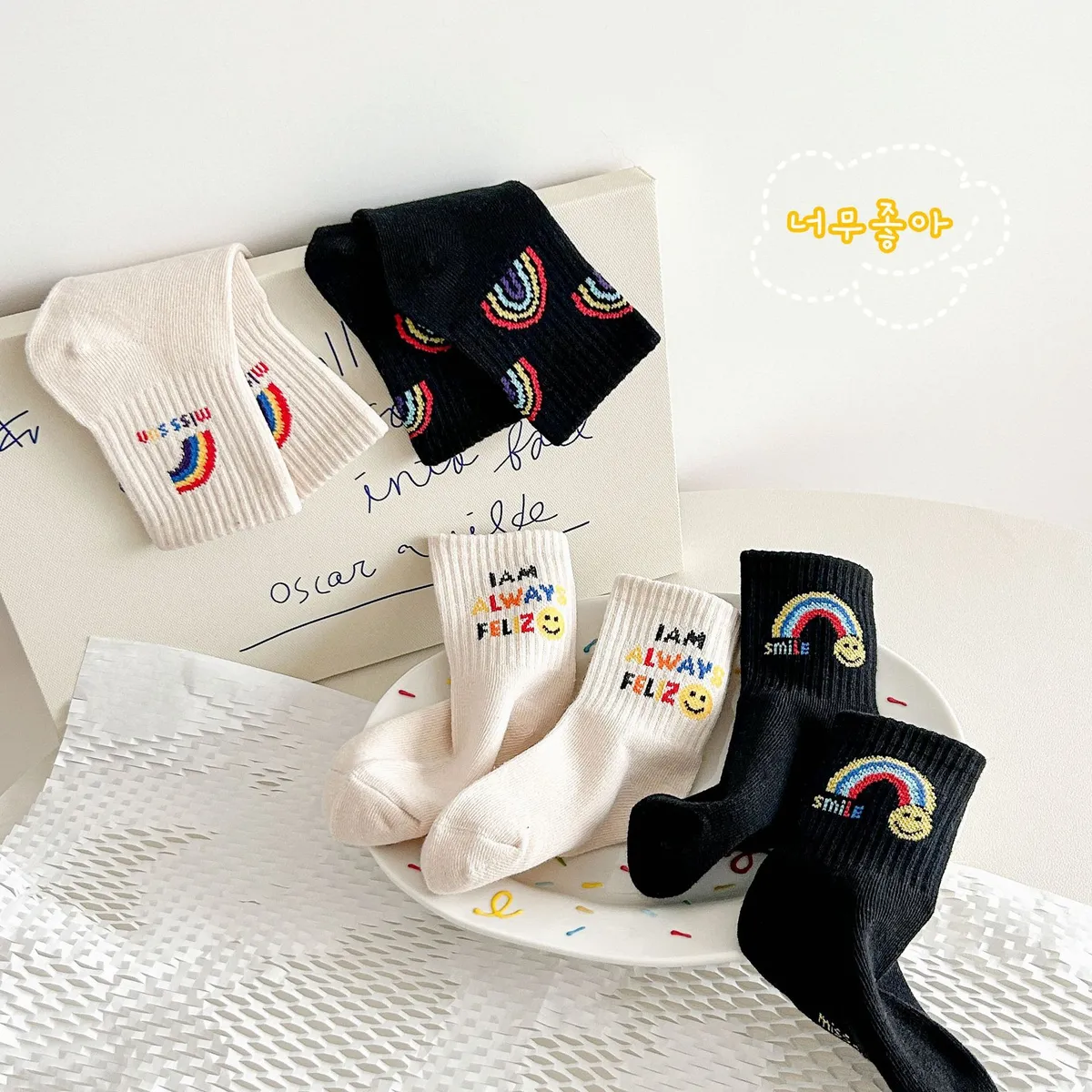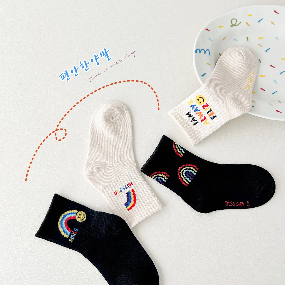 彩虹笑臉中筒襪(4入組)