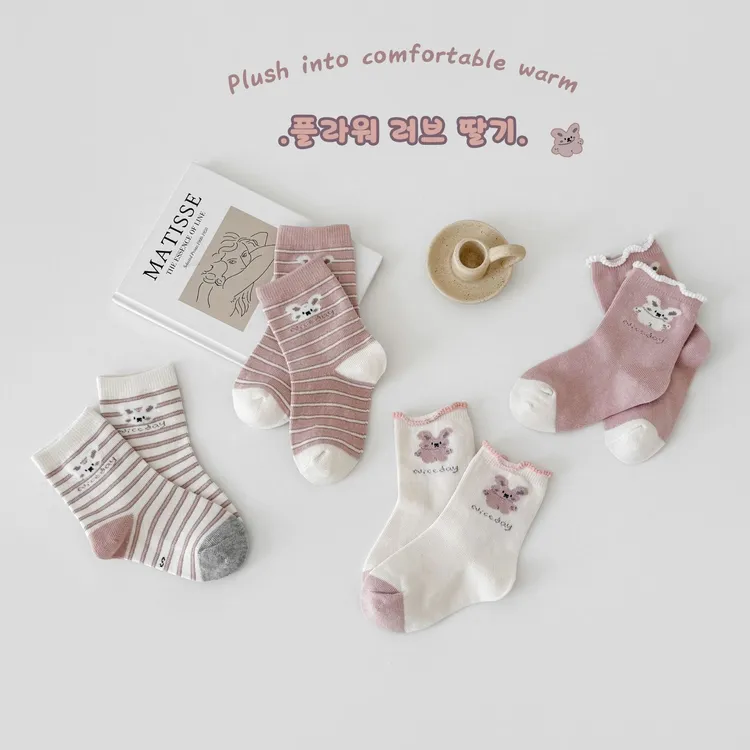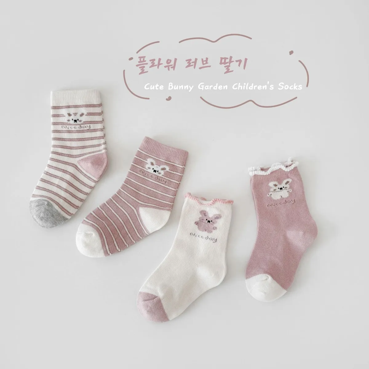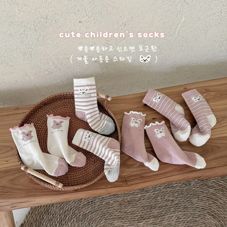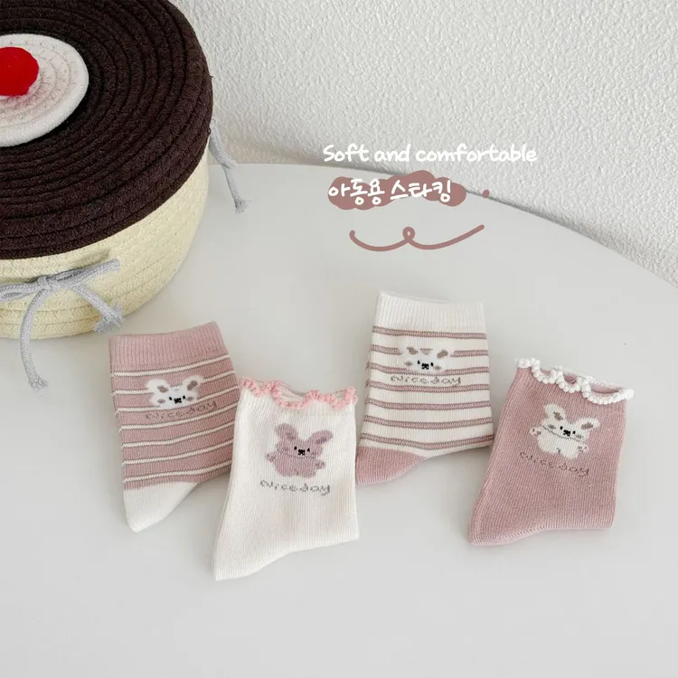 條紋兔兔中筒襪(4入組)