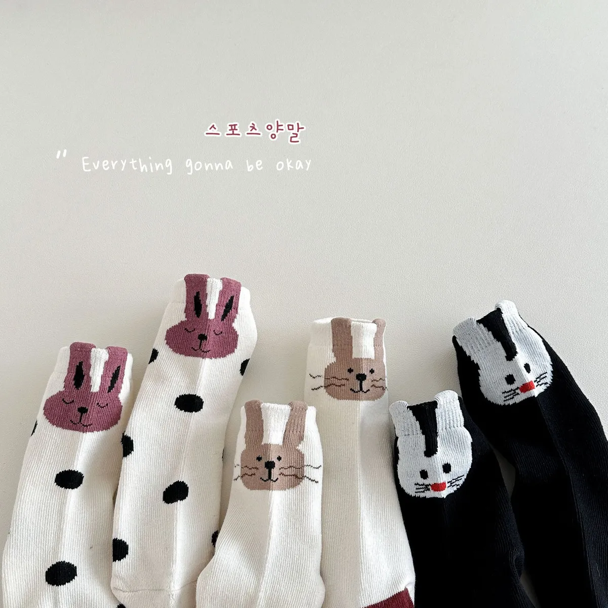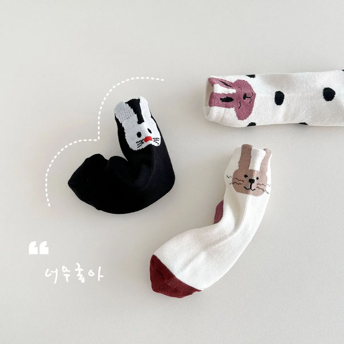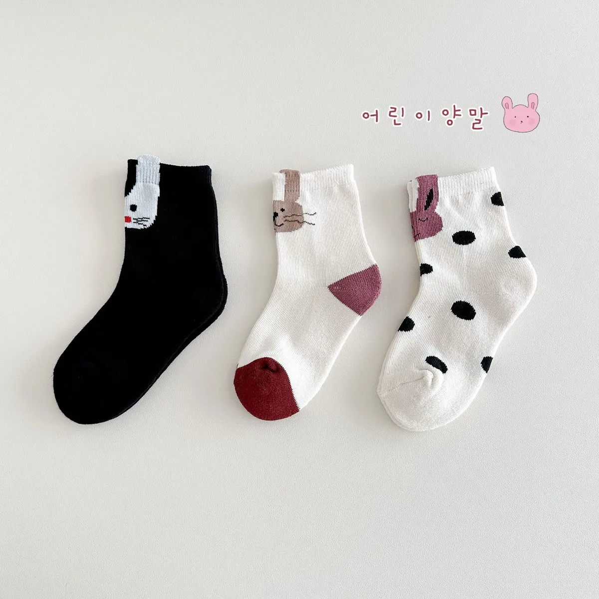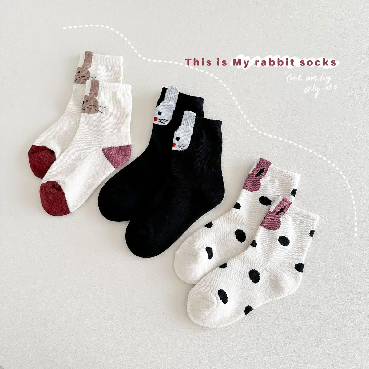 卡哇伊鬍鬚兔兔中筒襪(3入組)