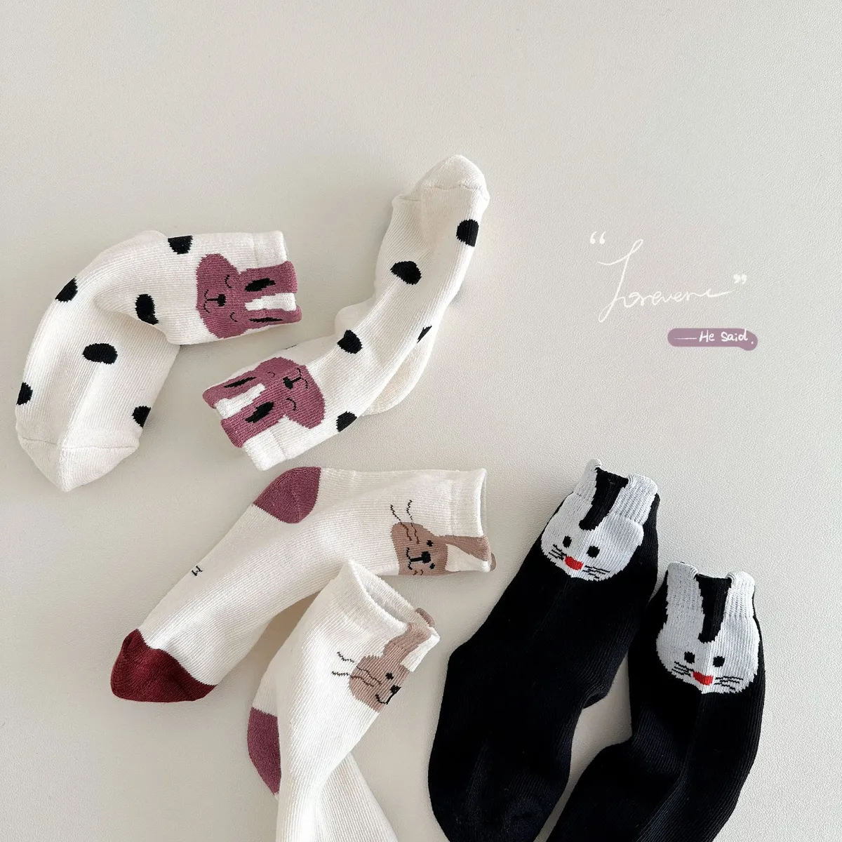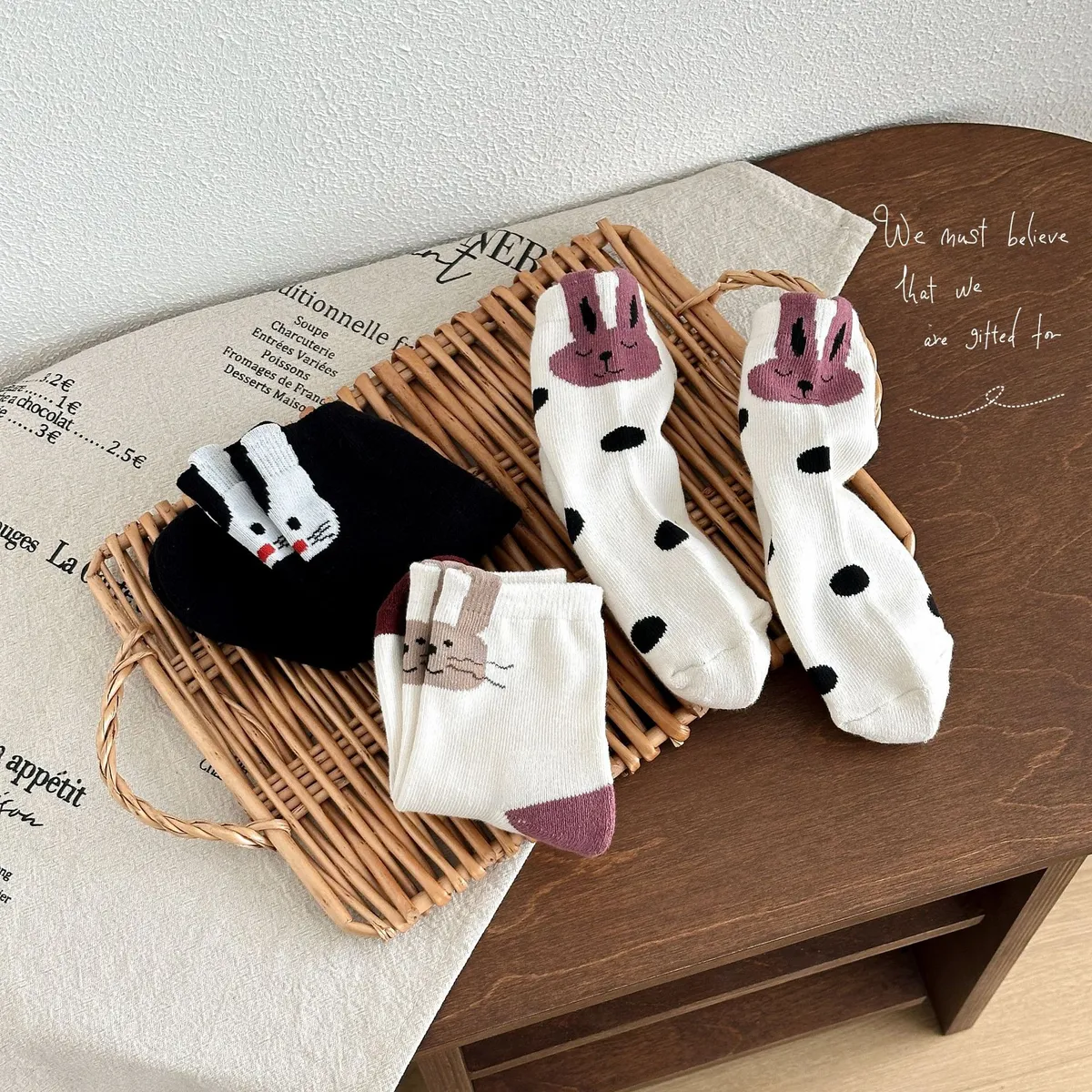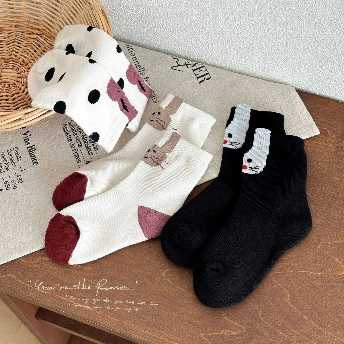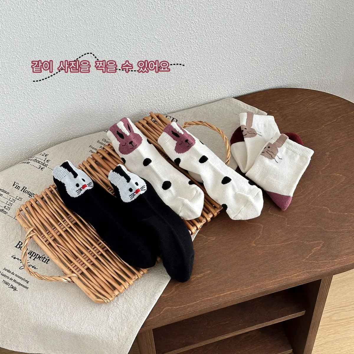 卡哇伊鬍鬚兔兔中筒襪(3入組)