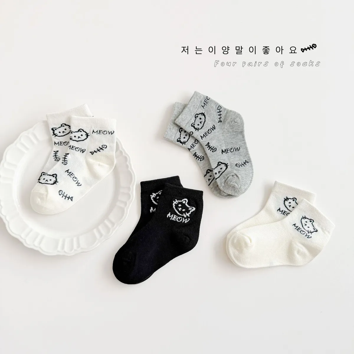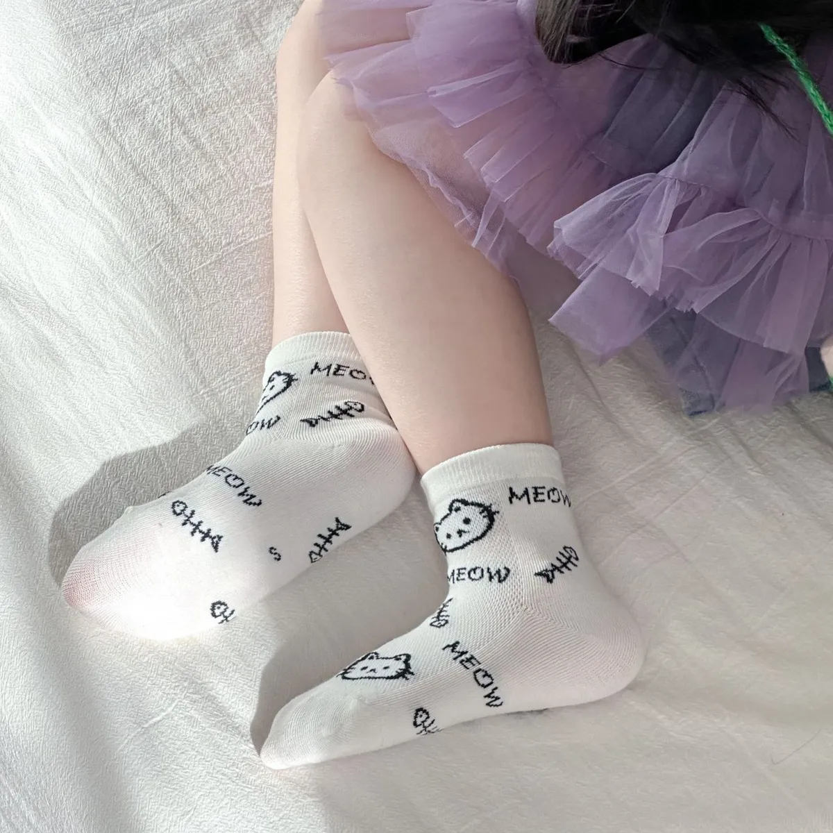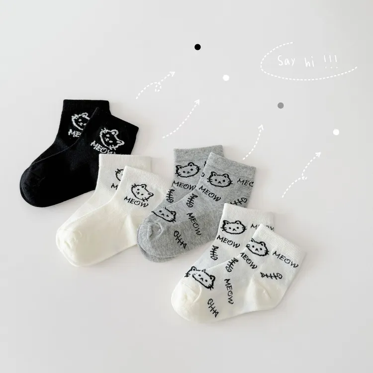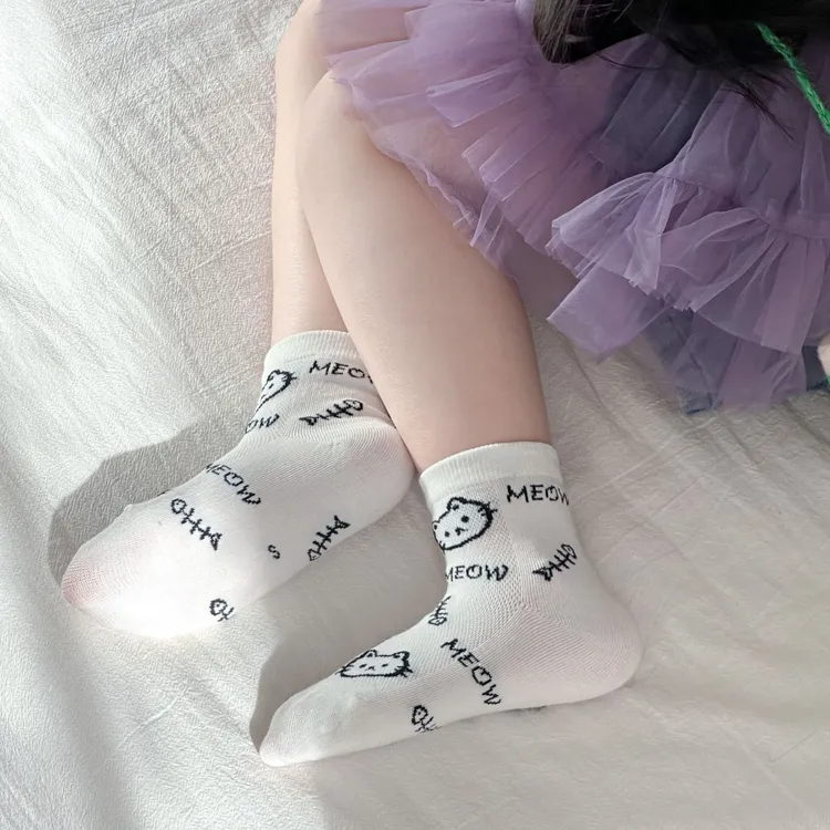 網眼款#小黑貓透氣短筒襪(4入組)